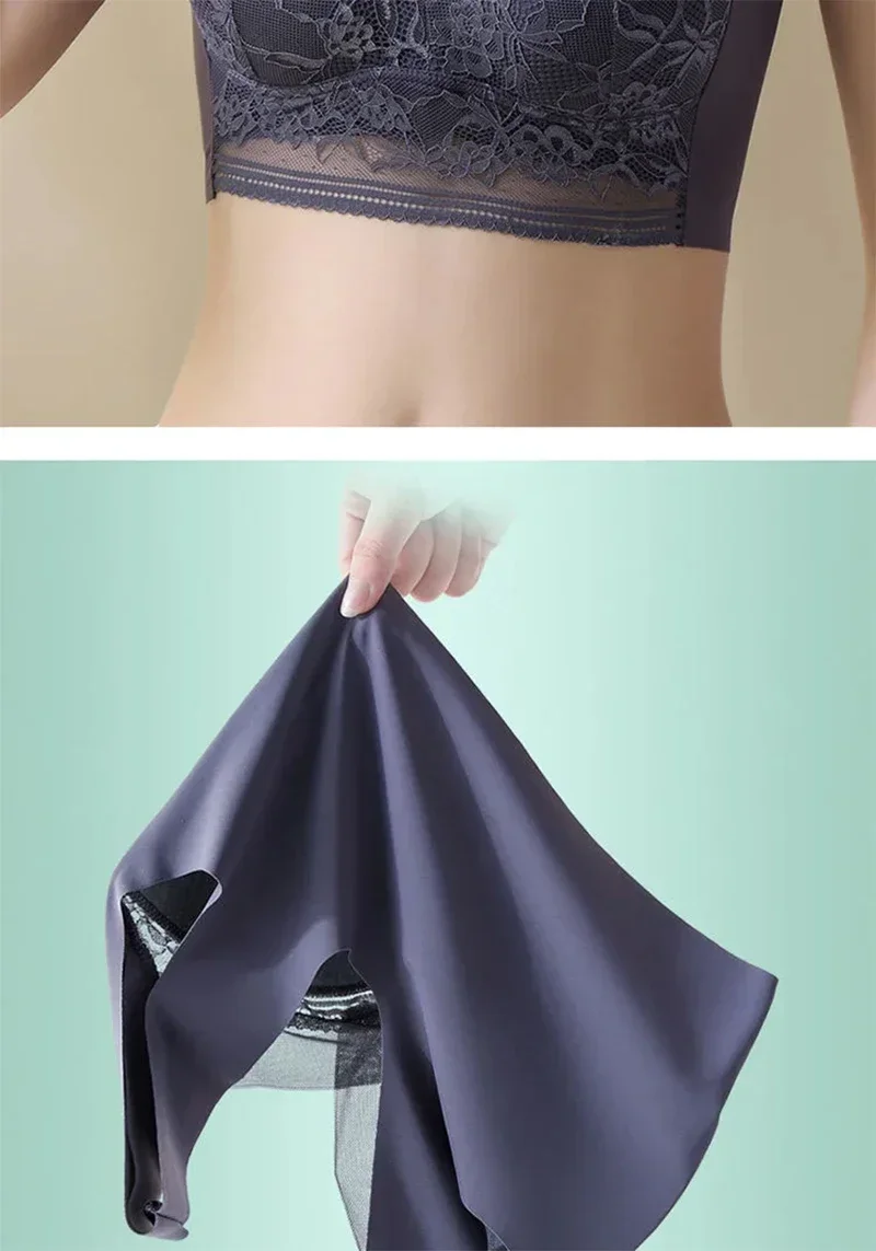 L-6L Women Large Bra Push Up Ice Silk Seamless upper Bralette Lace Wireless Summer Bras Plus Size Top Lingerie Underwear 15019