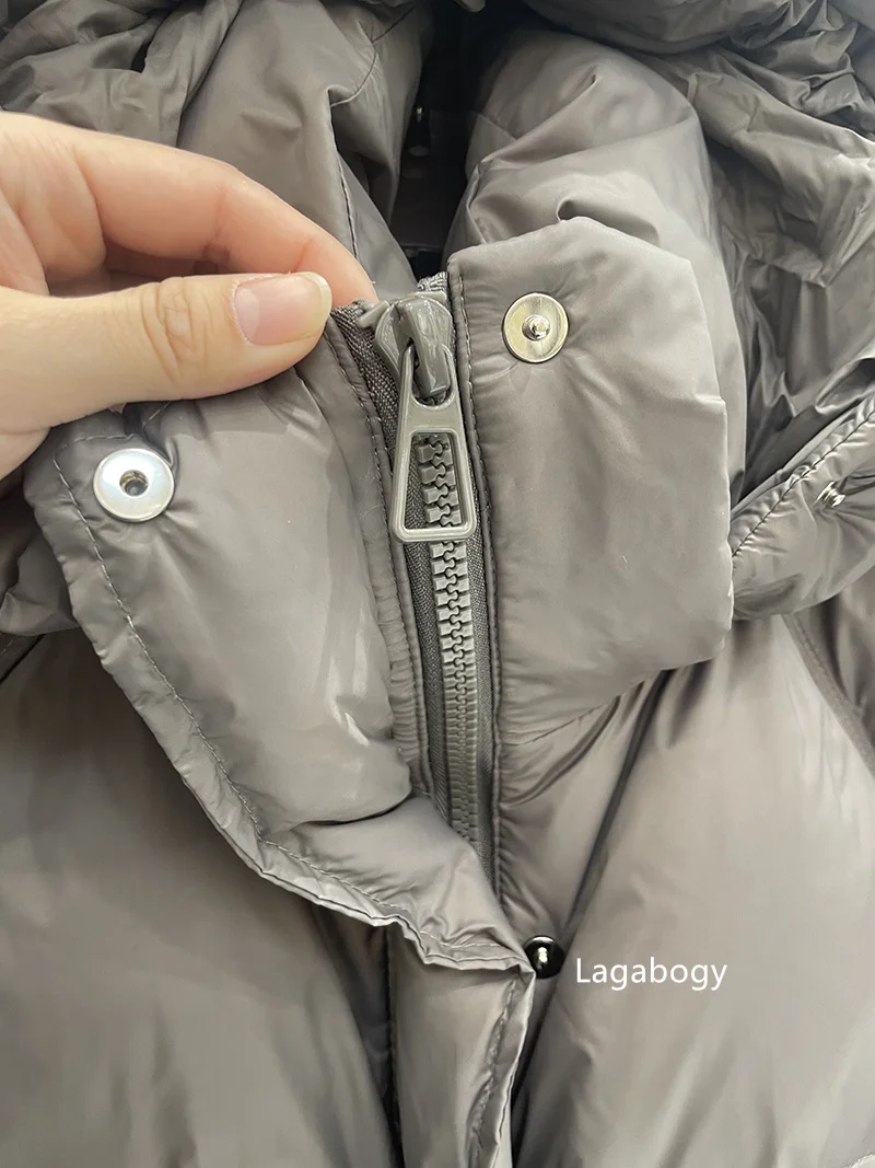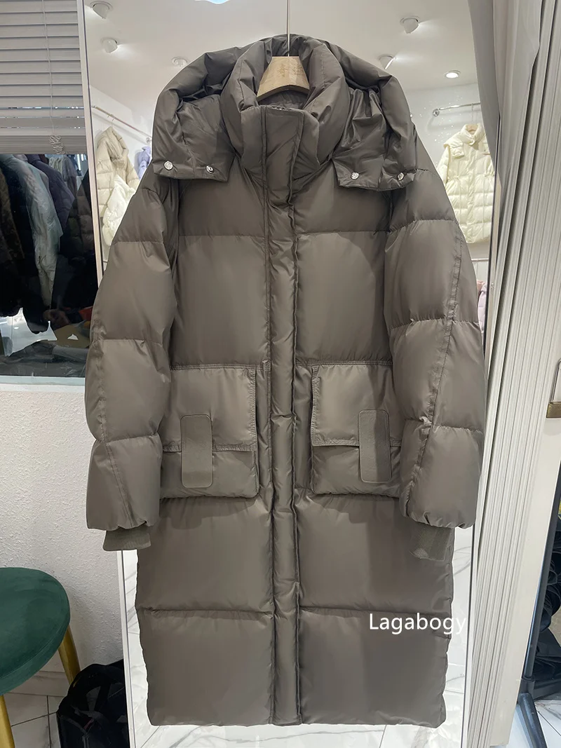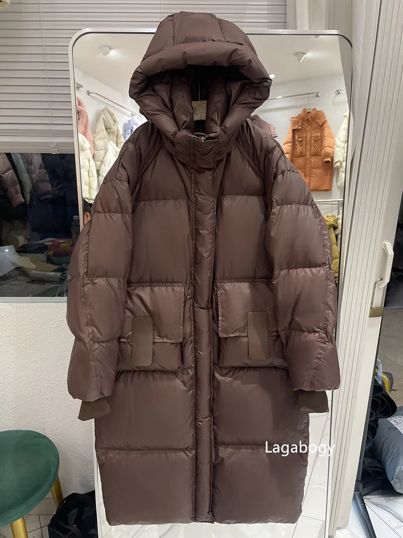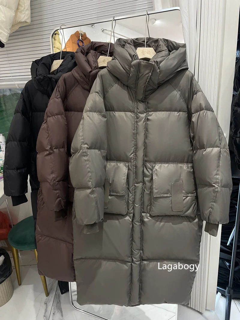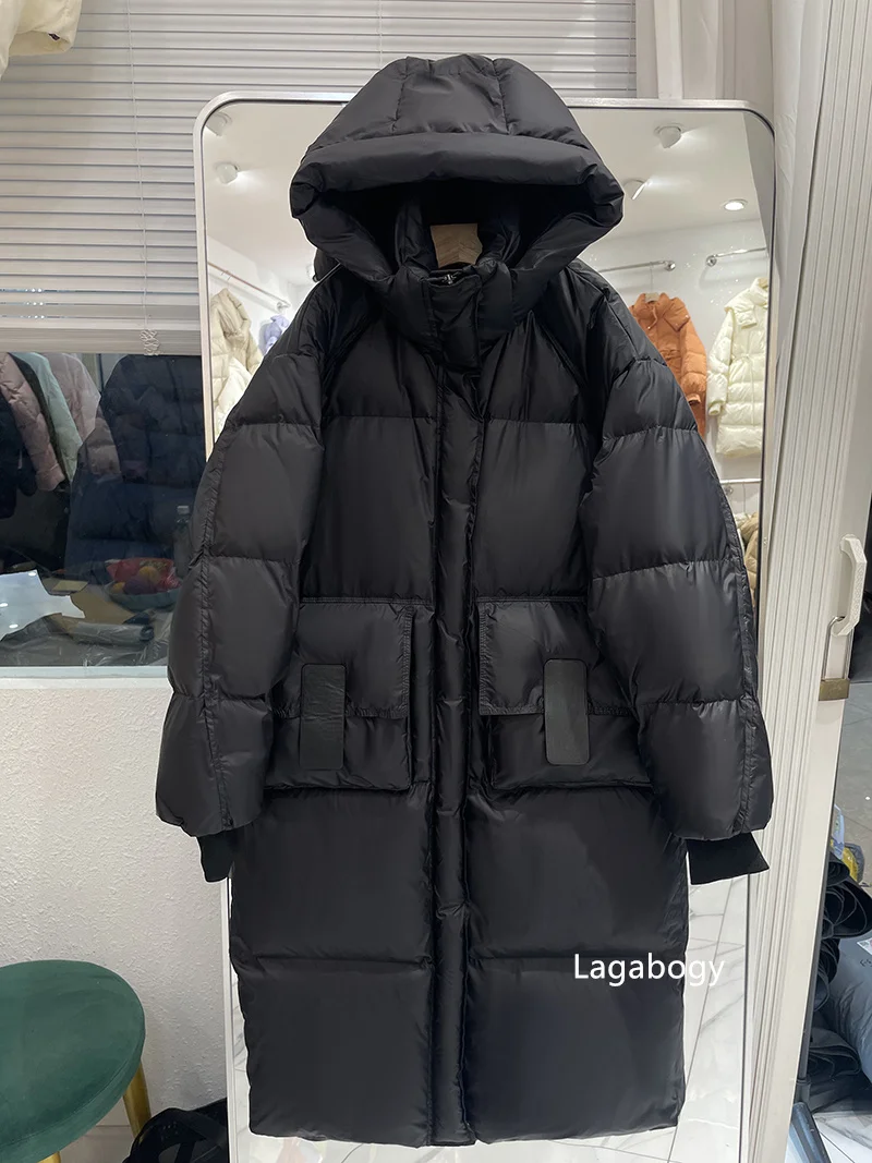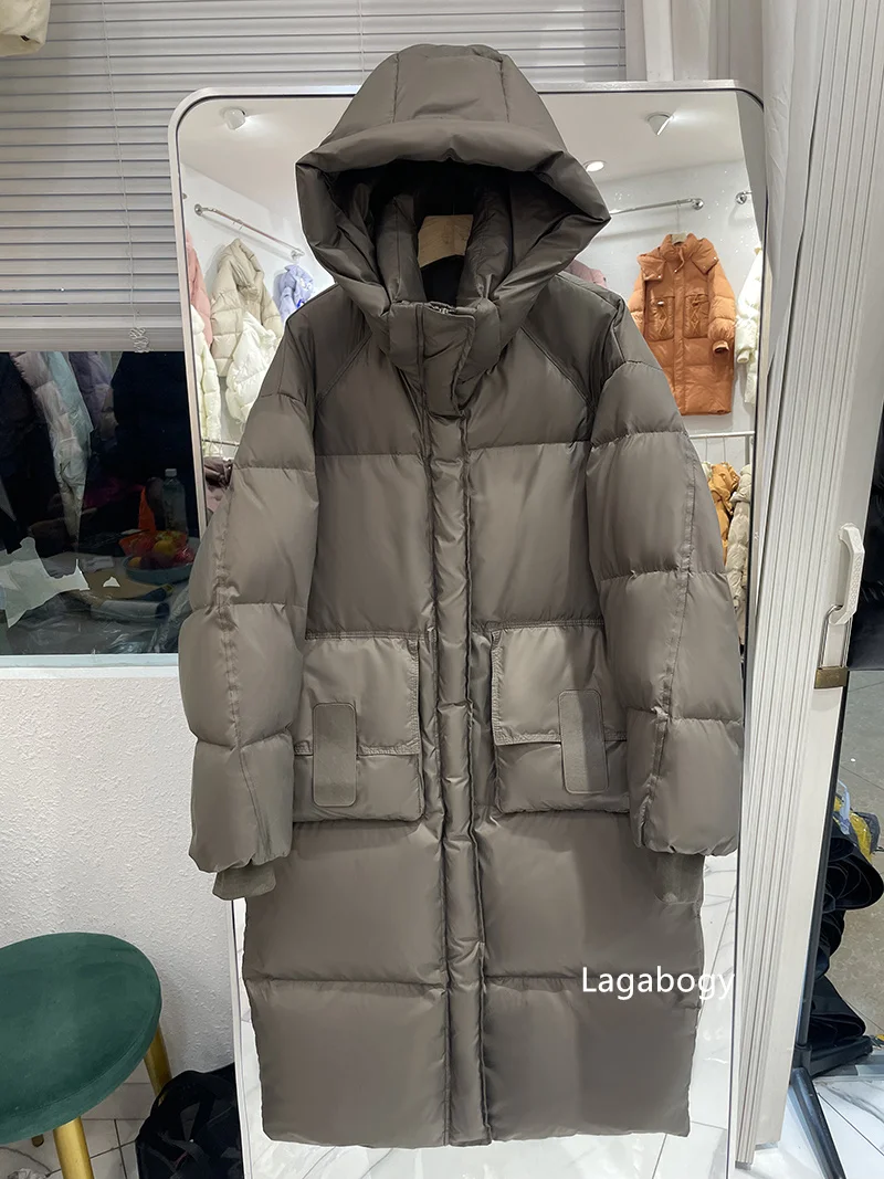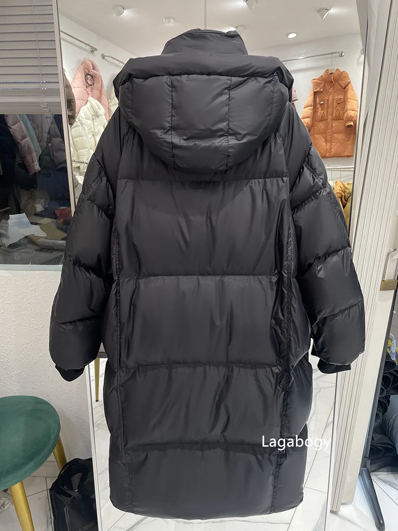 Lagabogy 2025 New Winter Women Puffer Jacket Female White Duck Down Coat Large Version of Warm Hooded Loose Thickened Long Parka