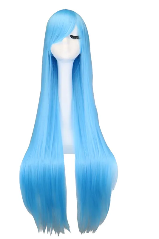 Long Straight Cosplay Wig Black Purple Black Red Pink Blue Dark Brown 100 Cm Synthetic Hair Wigs