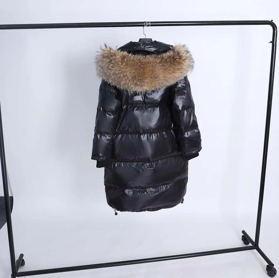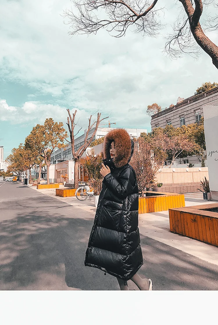 Maomaokong 2022 Women Winter Black Loose Long Down Jacket Real Fox Fur Collar Hooded Fashion Waterproof Female Extra Large Coat