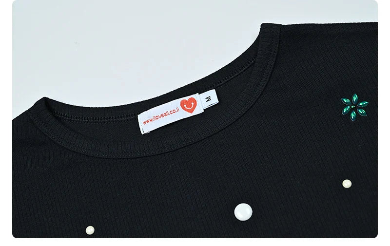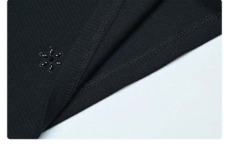 Maxi dress women long sleeve lady dresses flowers and pearls top causual dress round neck black modal ribbed top sizes XS-XXXL