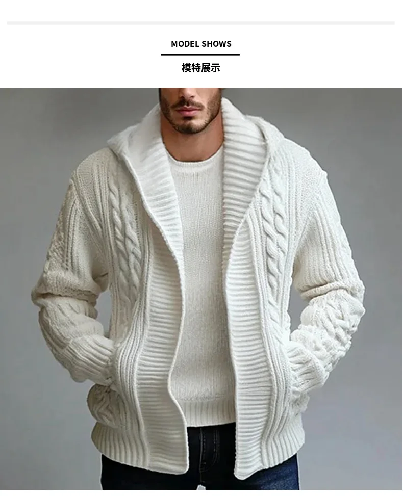 Men Cardigan Sweaters Hooded Coat Full Sleeve Solid Coats Casual Loose Outerwear Splice Open Stitch Autumn Winter 2024