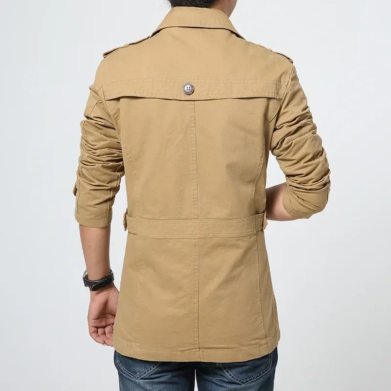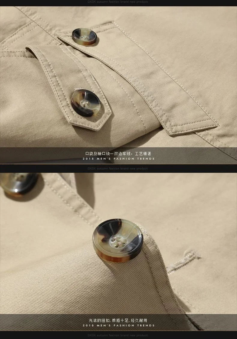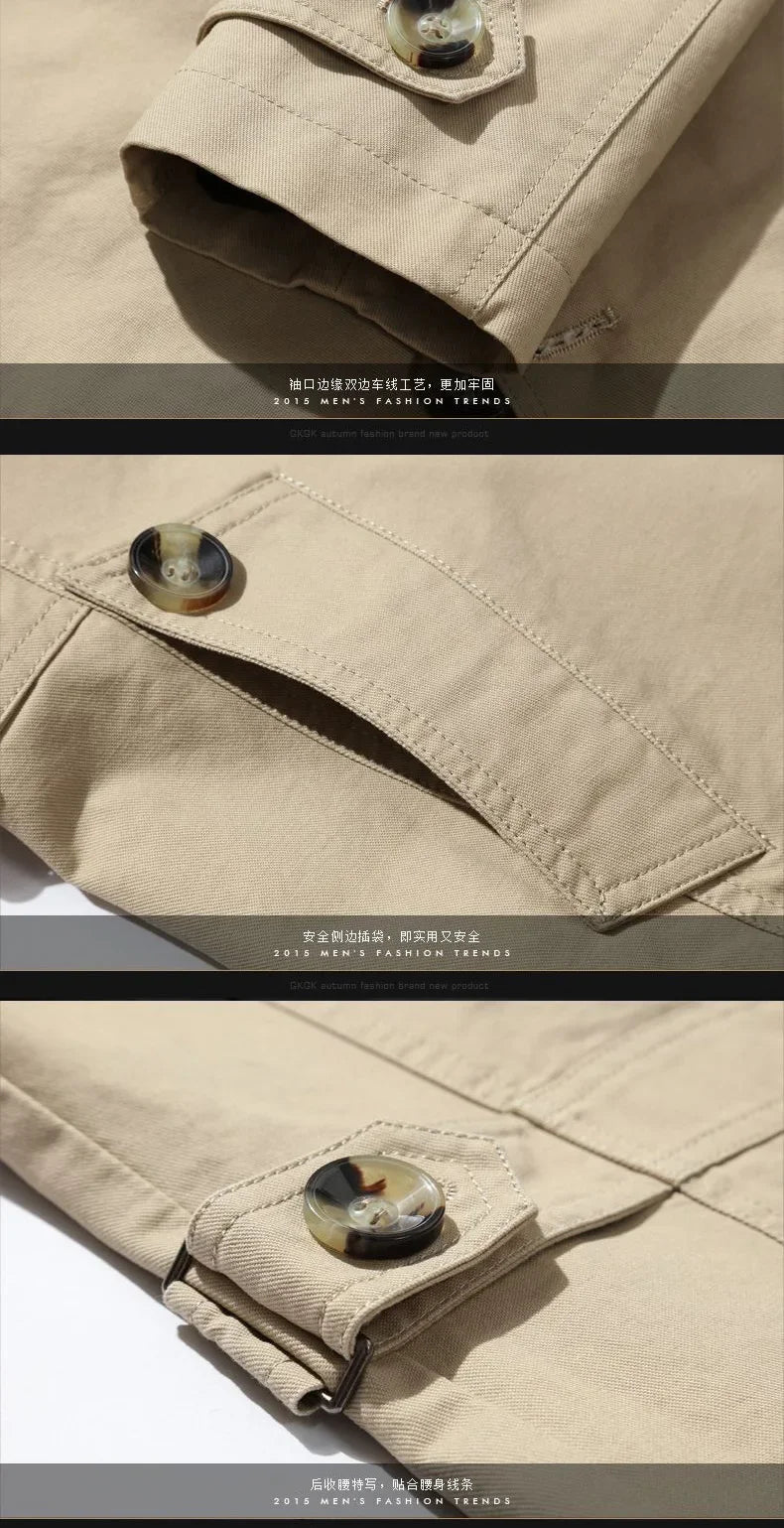 Men's Business Windbreaker Solid Casual Long Jackets Men Cotton Trench Coats Spring Autumn Fashion Male Suit Streetwear Blazers