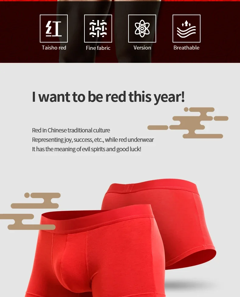 Men's underwear Men's boxers This man's gift is a pig red wedding thin boxers bottom shorts