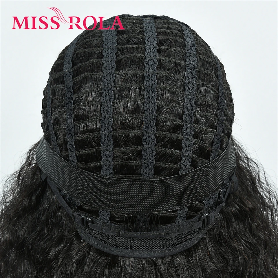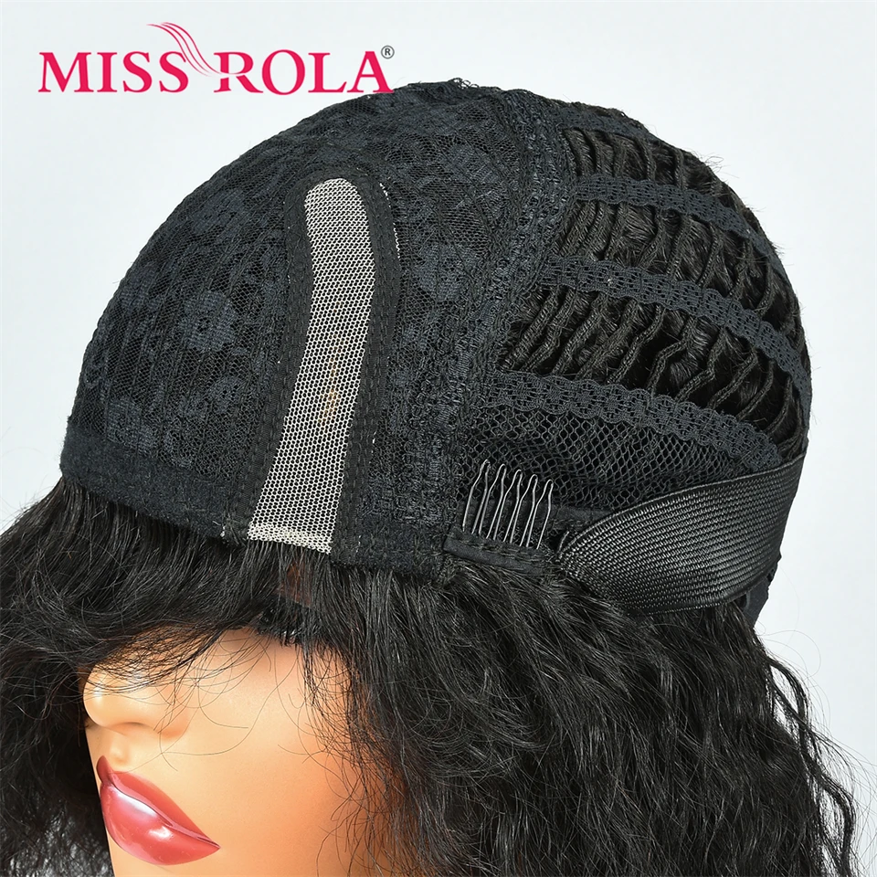 Miss Rola Brazilian 4X1 Lace Part Human Hair Wigs Right Side Part Water Wave Wig With Bangs Remy Lace Wig 180% Density