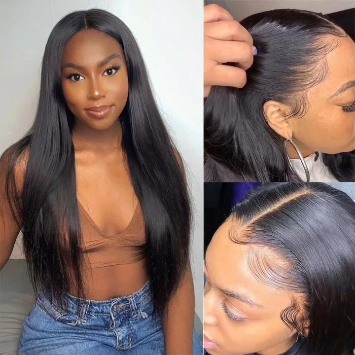 Miss Rola Lace Front Human Hair Wigs Brazilian Remy 100% Human Hair Straight Wig 13*4 Lace Frontal Wig Pre Plucked Middle Ratio