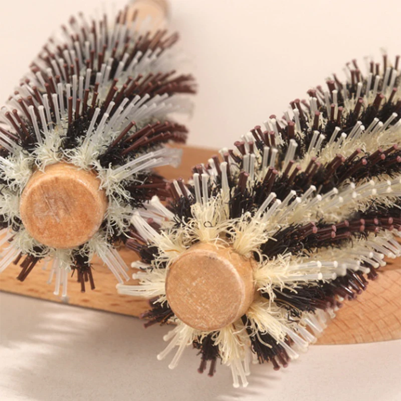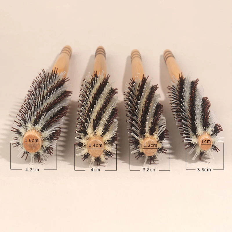 Natural Boar Bristle Roller Brush Barber Hair Roller Wood Hair Brush Round Barrel Hair Comb For Women Curly Hair Hairdressing