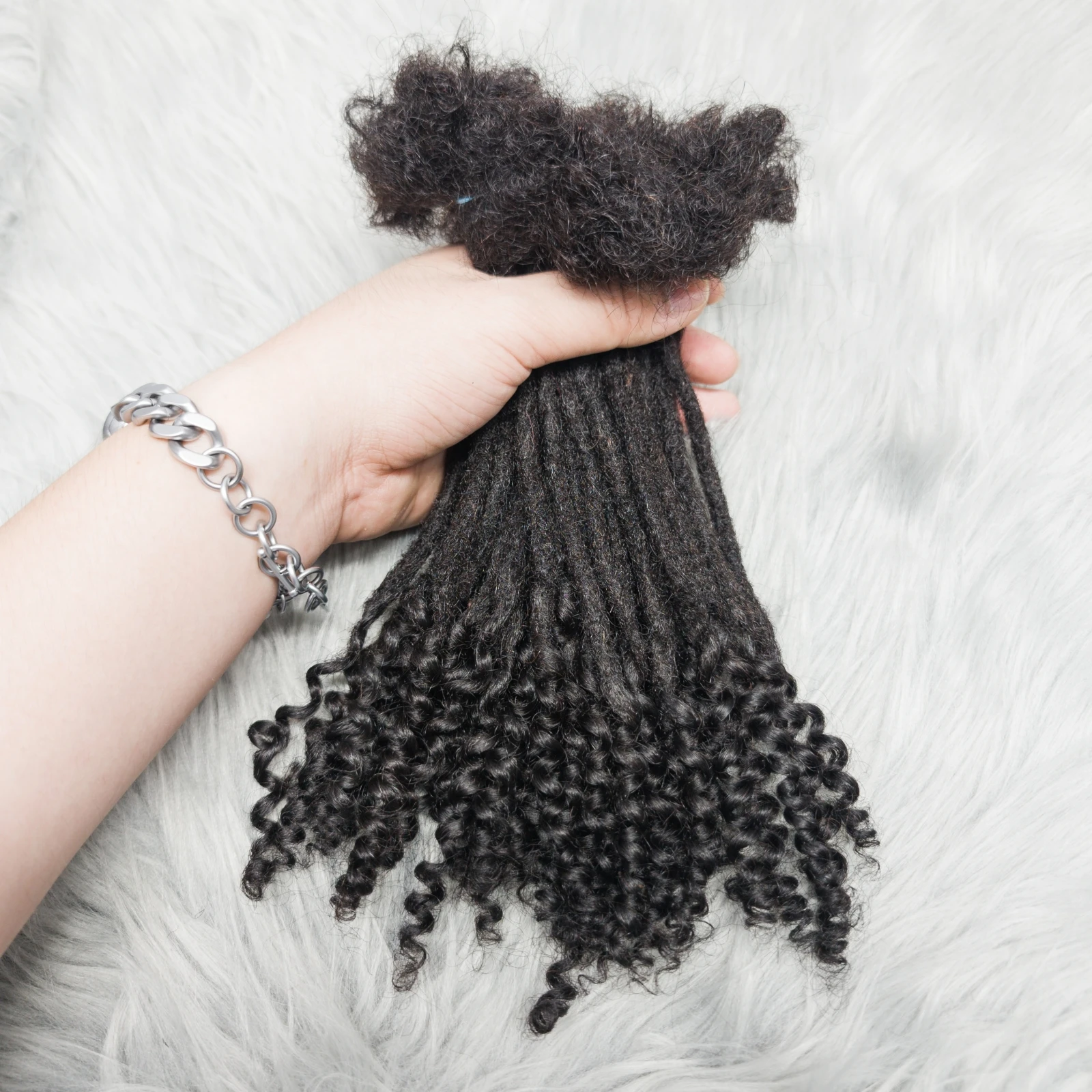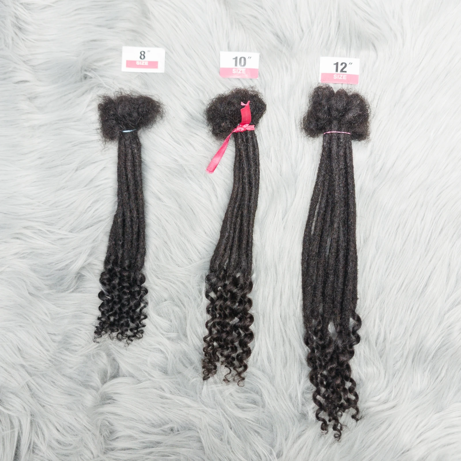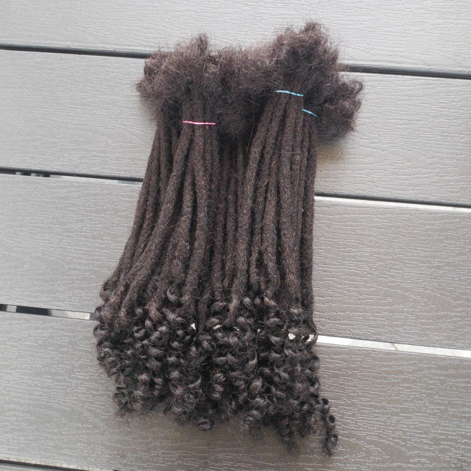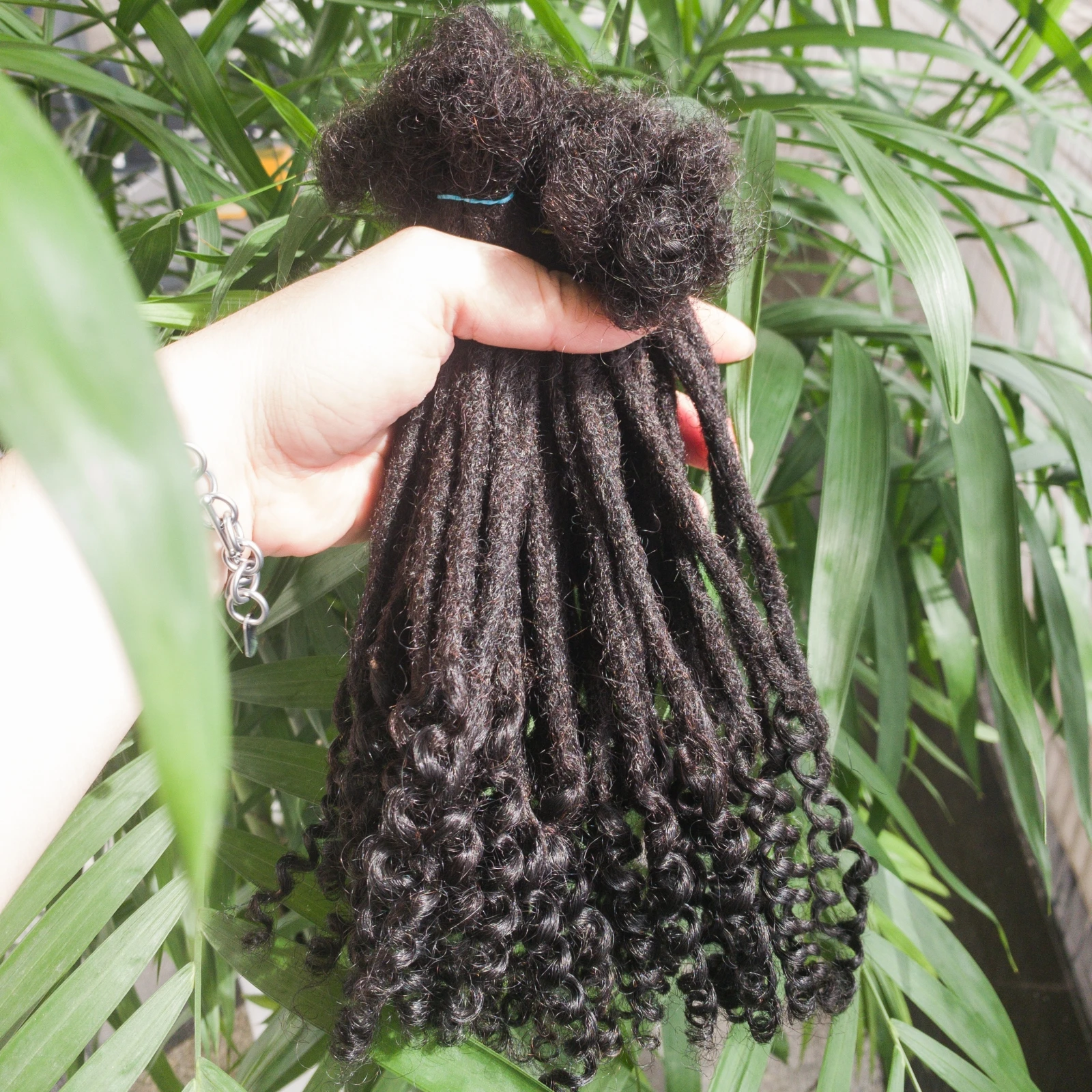 Natural Human Hair Dreadlock Extensions with Curly Ends 8-12 Inch Handmade Curled Tail Locks Extension for Women Men 10 Strands