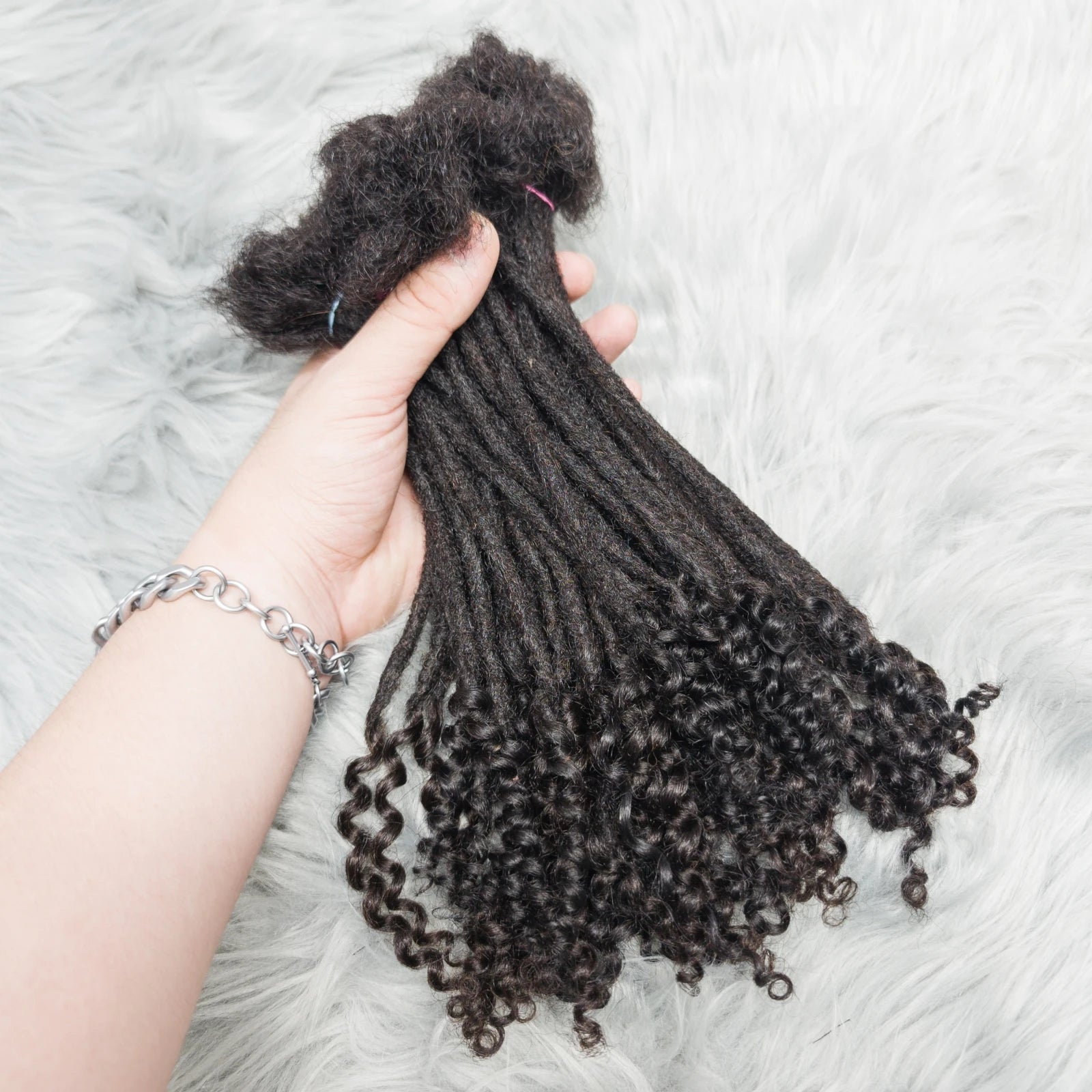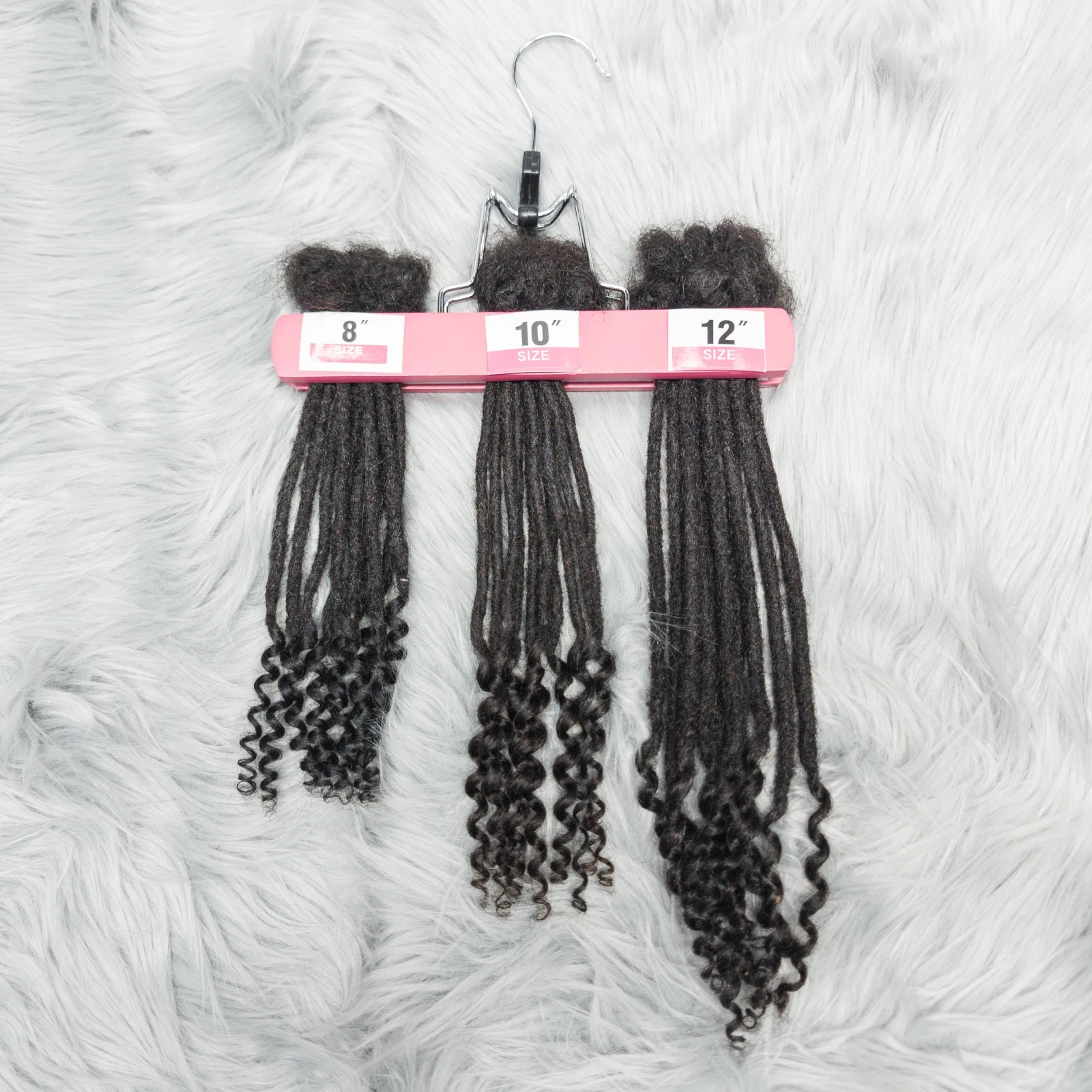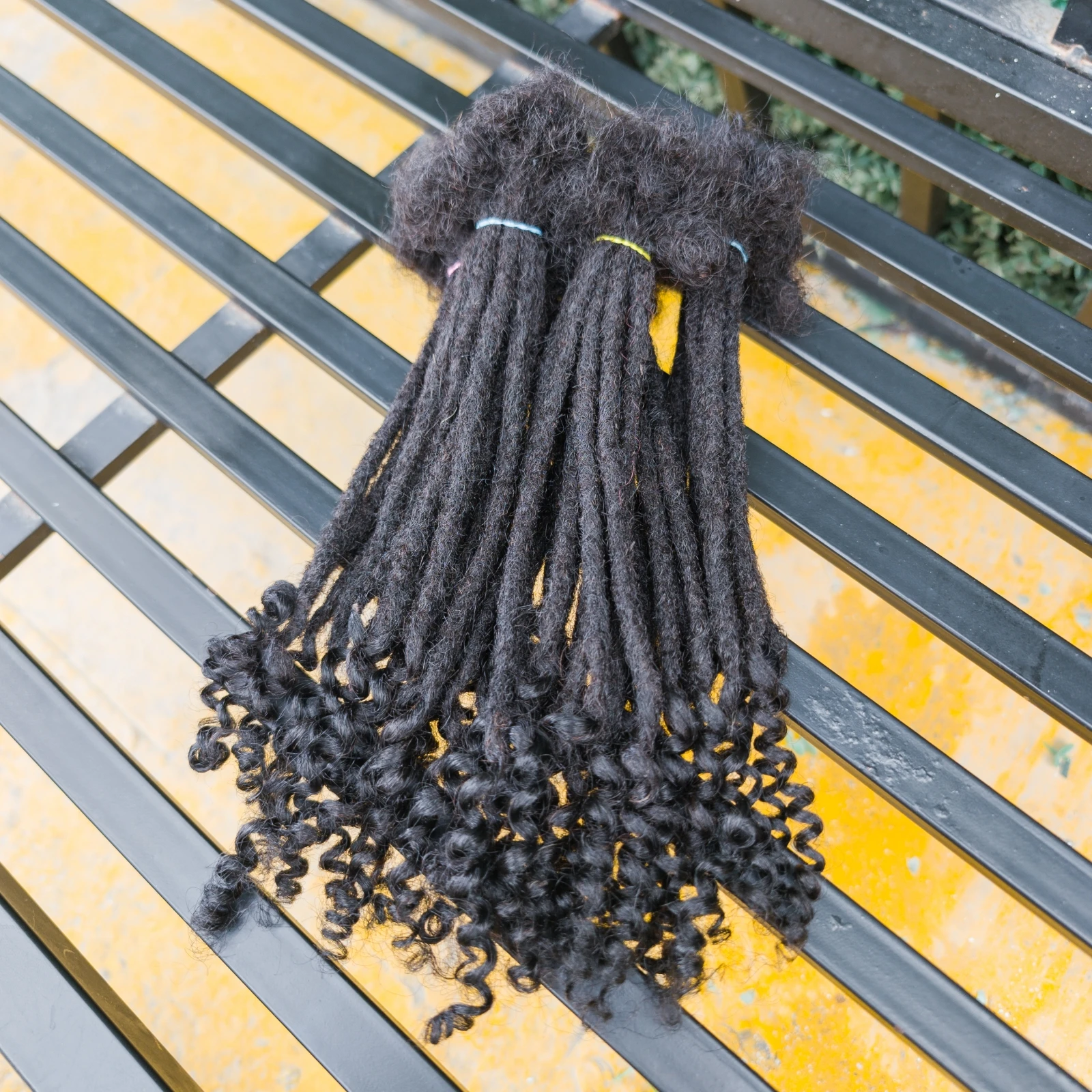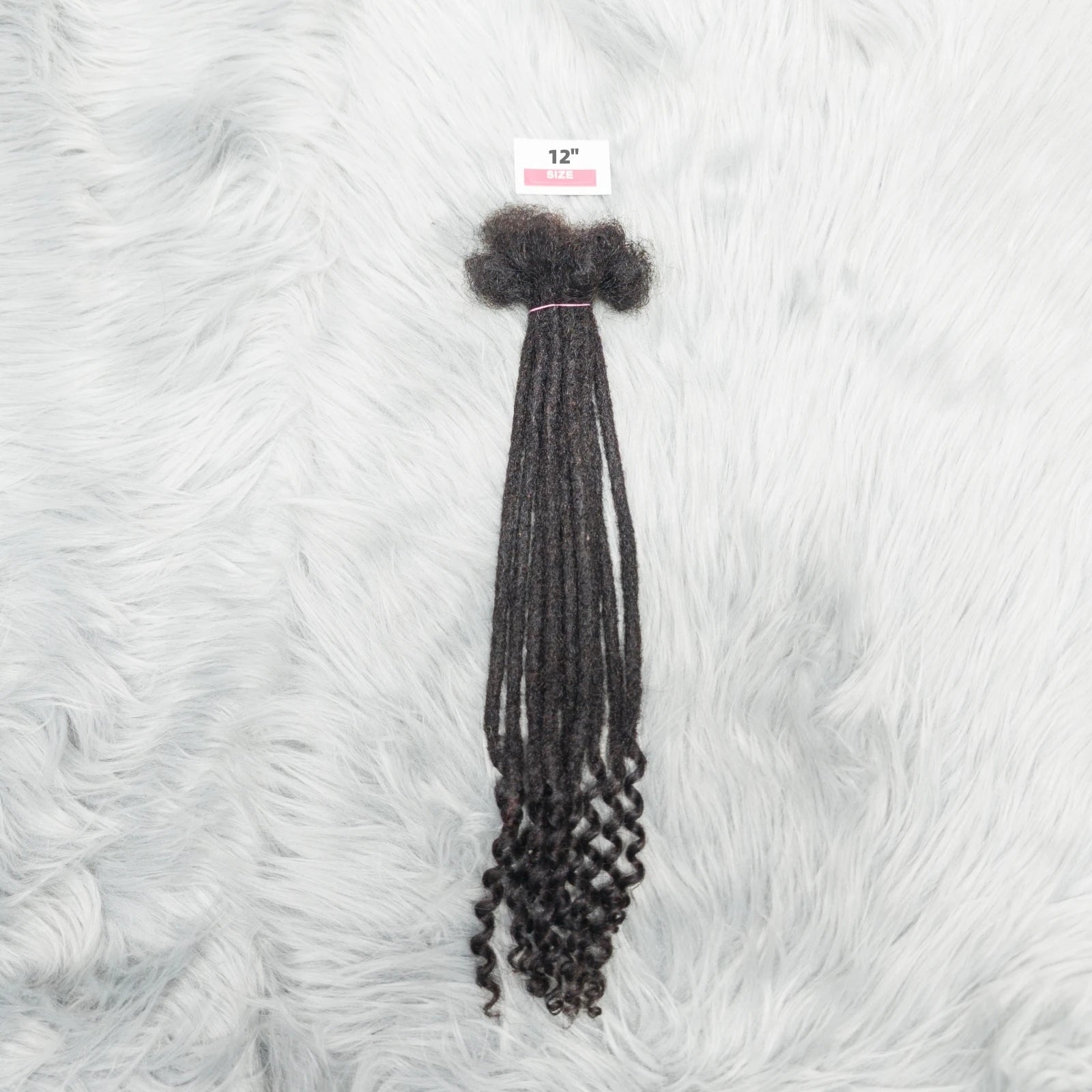 Natural Human Hair Dreadlock Extensions with Curly Ends 8-12 Inch Handmade Curled Tail Locks Extension for Women Men 10 Strands