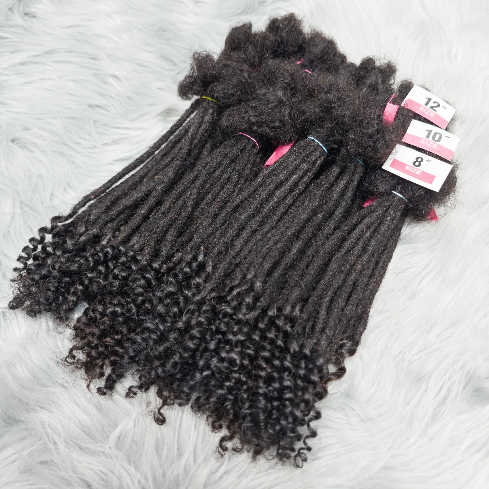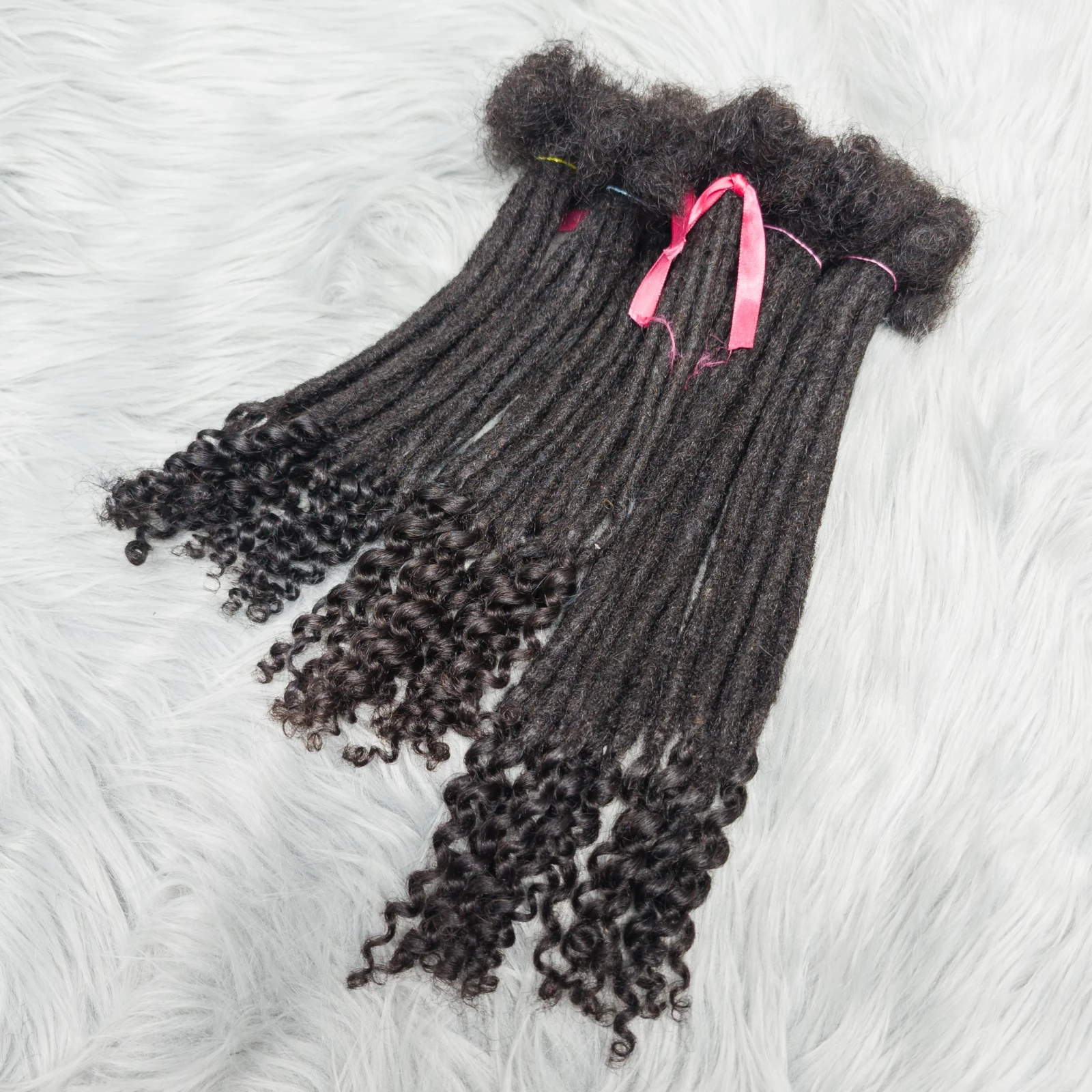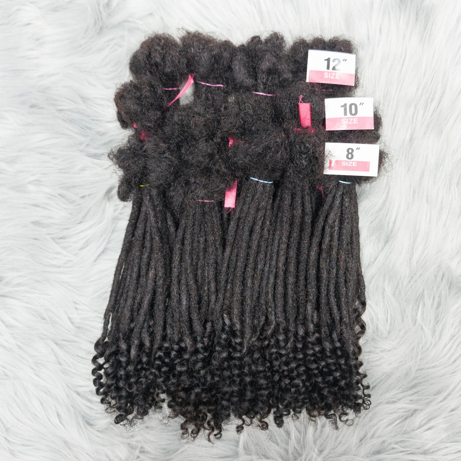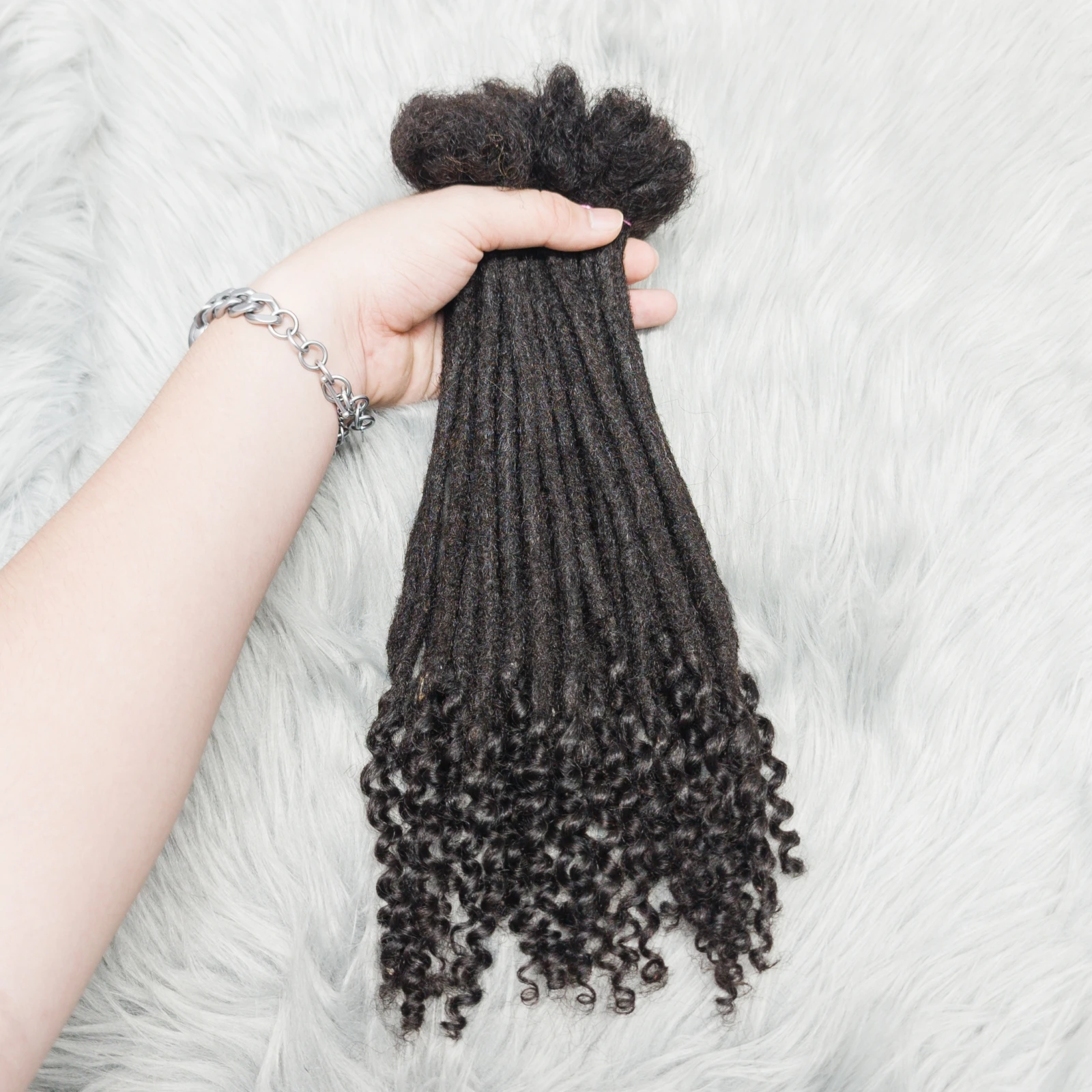Natural Human Hair Dreadlock Extensions with Curly Ends 8-12 Inch Handmade Curled Tail Locks Extension for Women Men 10 Strands