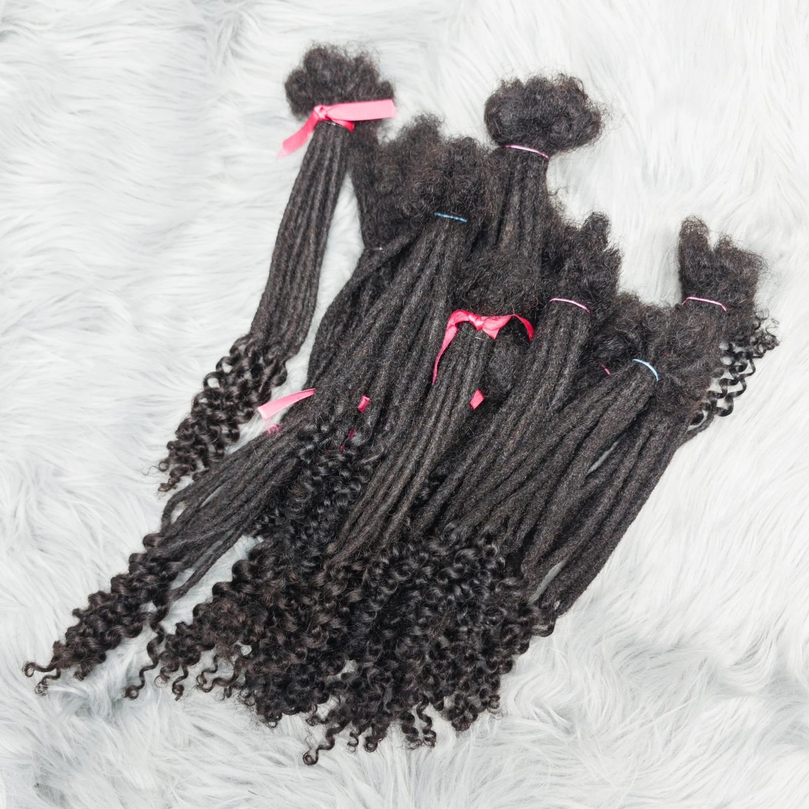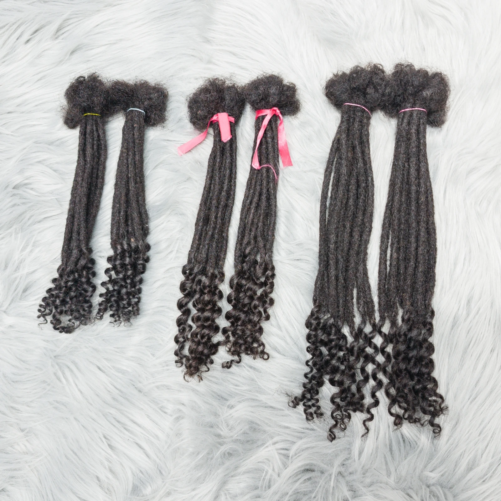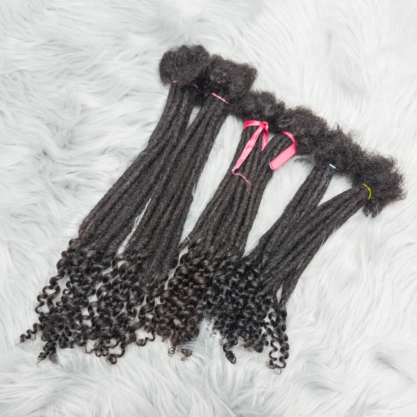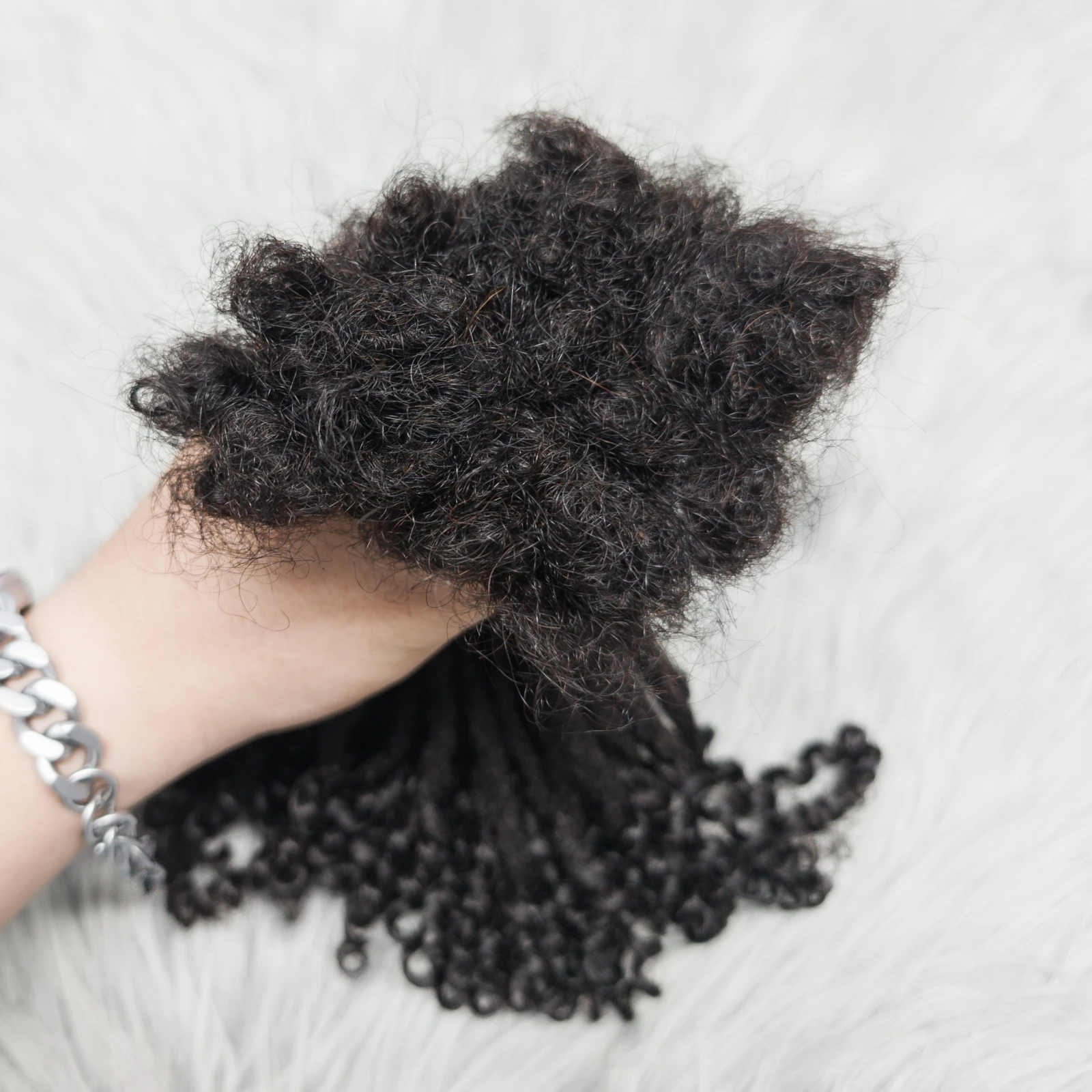 Natural Human Hair Dreadlock Extensions with Curly Ends 8-12 Inch Handmade Curled Tail Locks Extension for Women Men 10 Strands