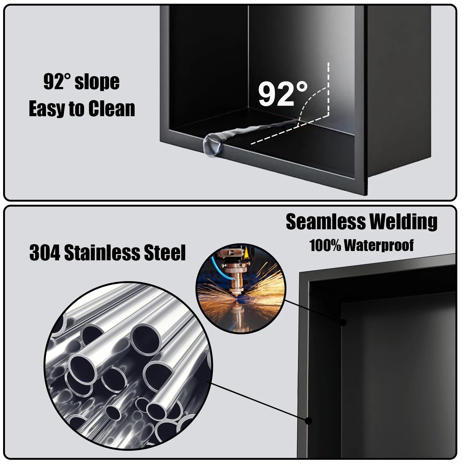 NEODRAIN Matte Black 12x24" LED Wall Niche IPX65 Waterproof Rated FCC Certified Ready to Ship From USA