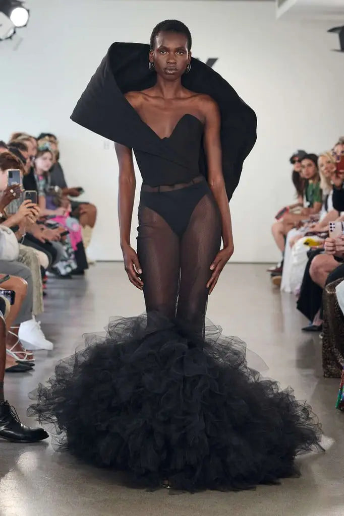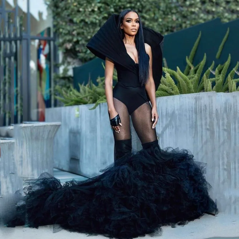 New Couture Maxi Dresses Soft Tulle Mermaid Long Party Dress Layered Black Custom Made Cloak Stand Design Prom Gowns Tierred