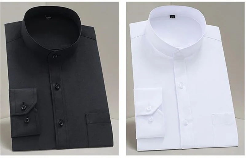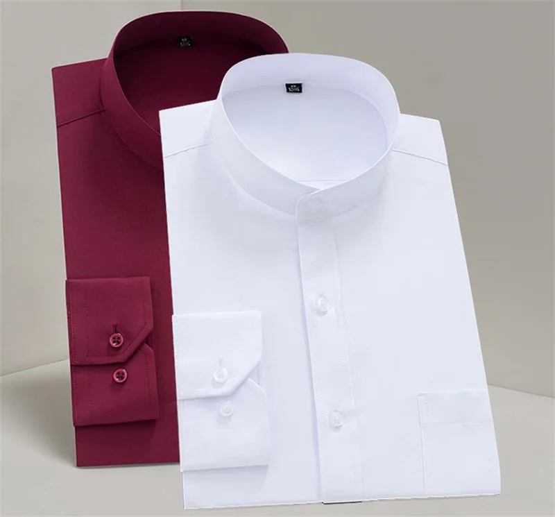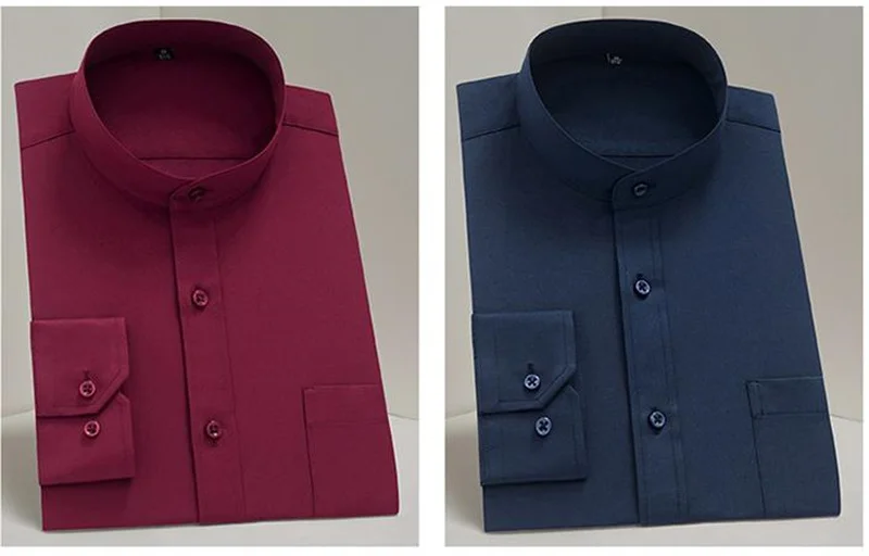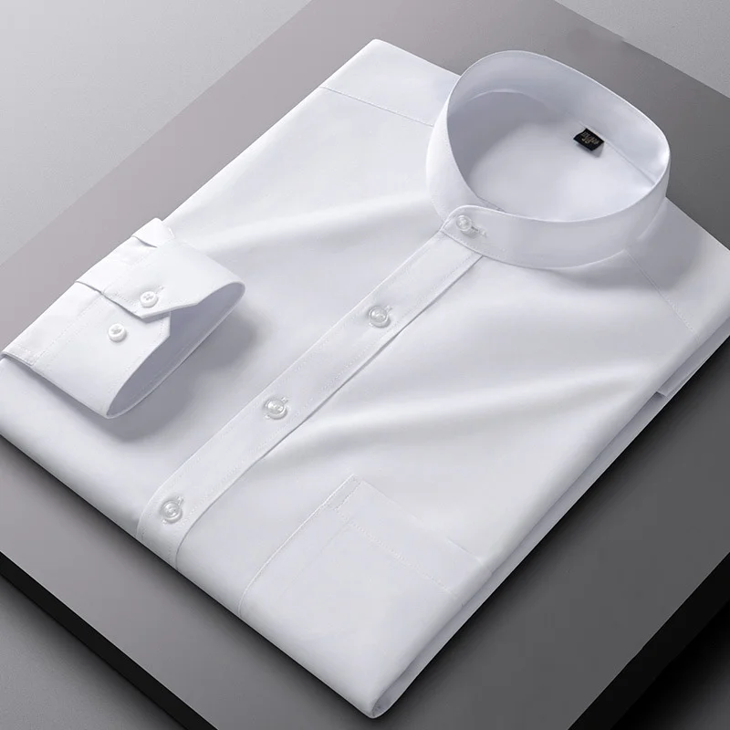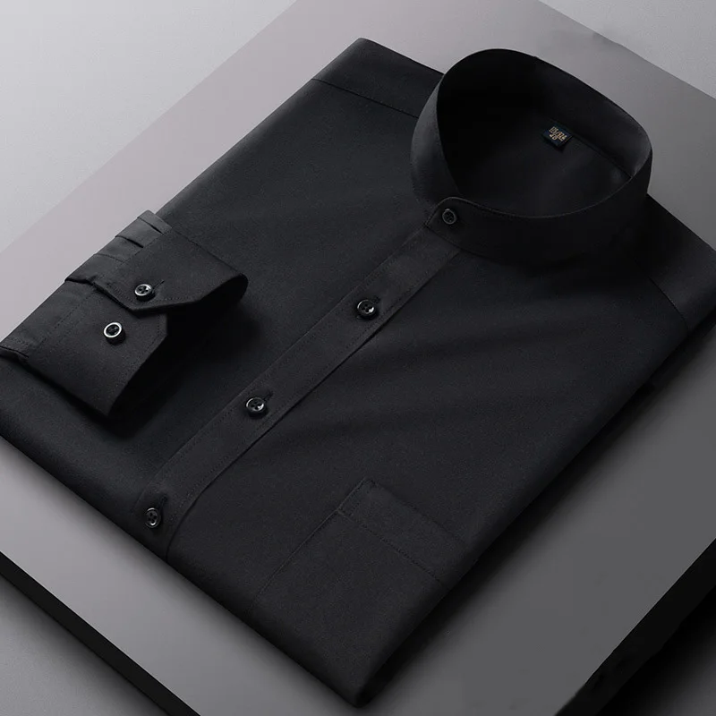 New Spring Autumn Stand Collar Shirt Men's Long Sleeve Breathable Anti-Wrinkle Easy Care Business Casual Dress Shirts