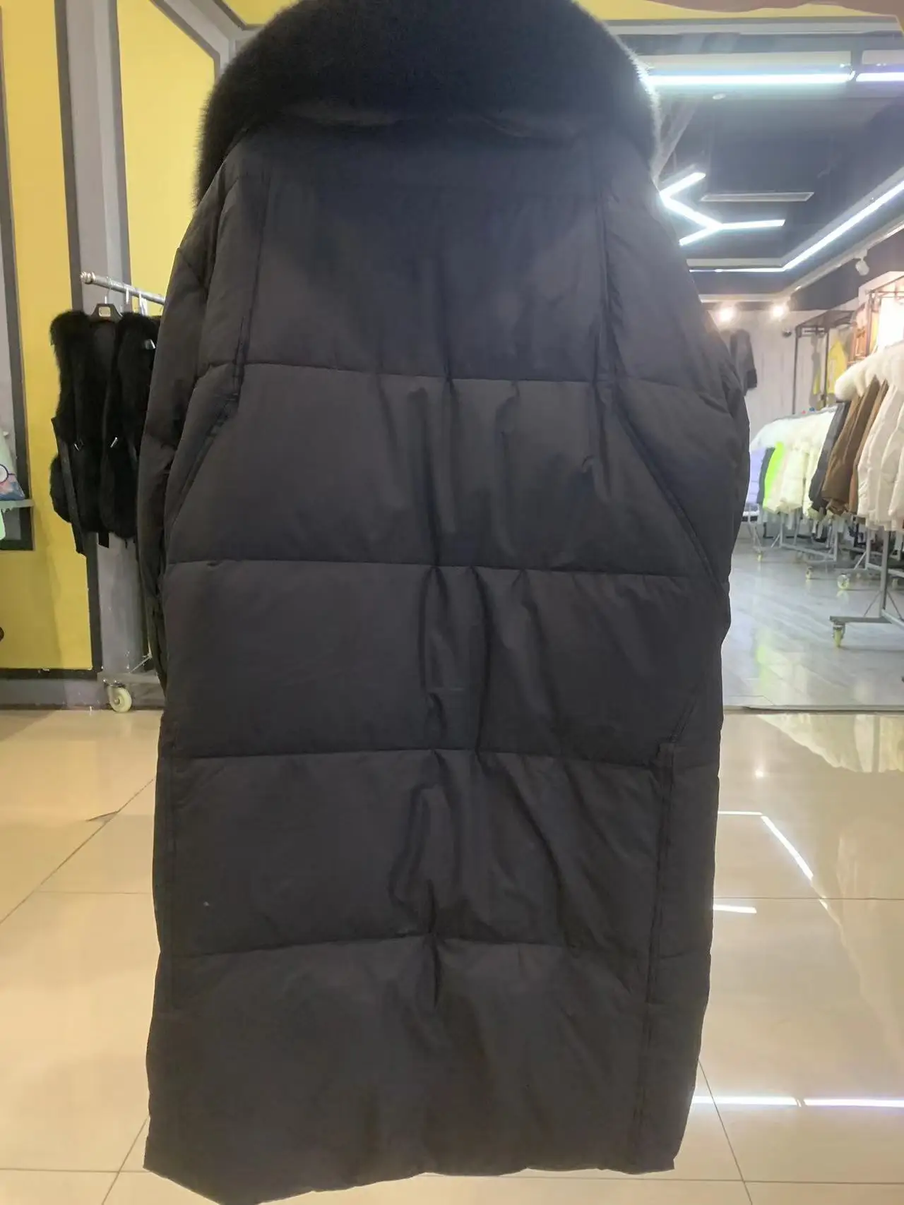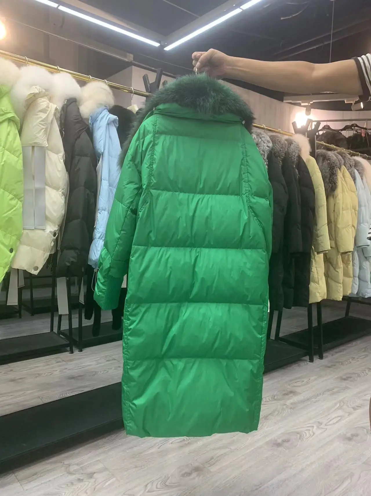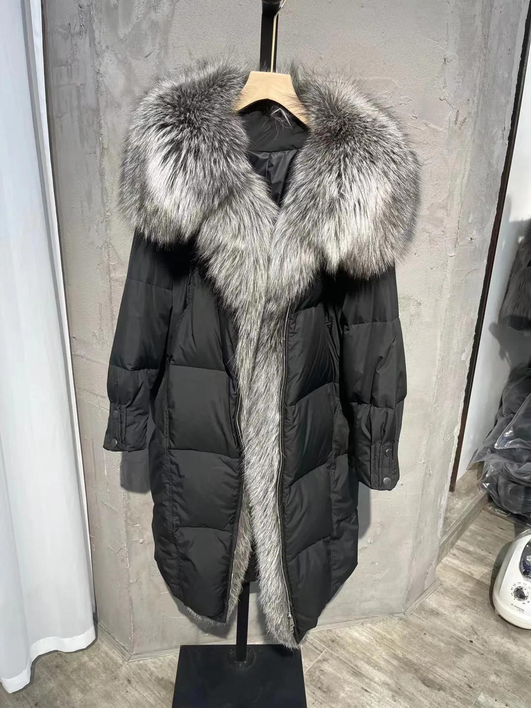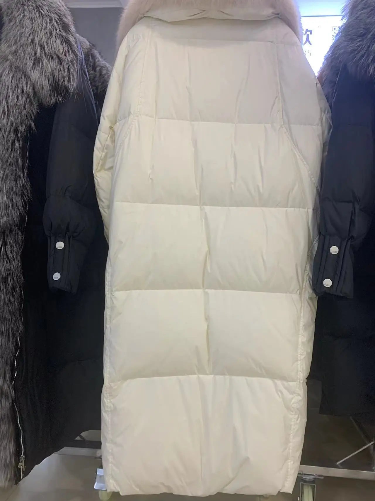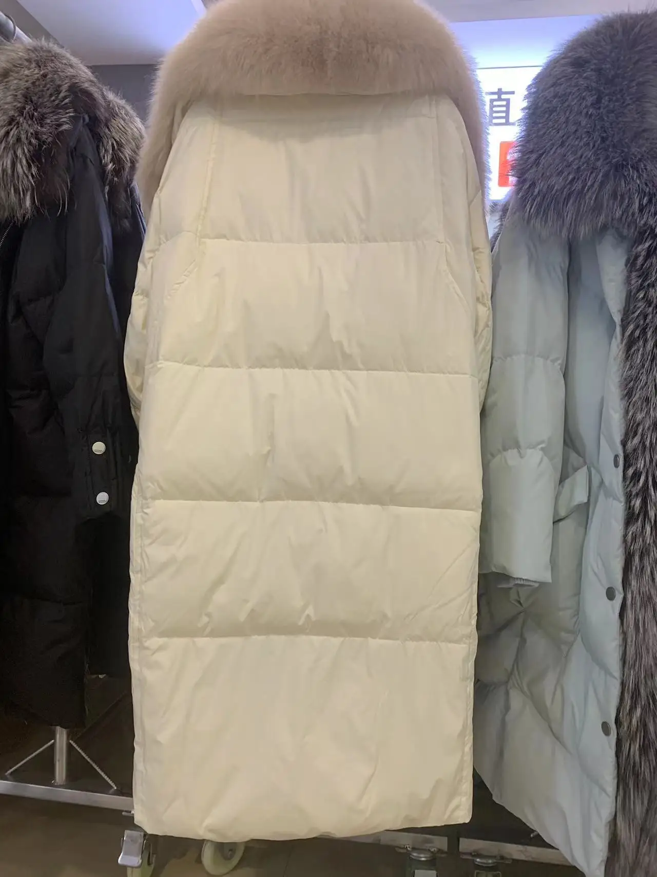 New Winter Coat Women Goose Down Jacket Long Thick Warm Oversized Real Fox Fur Collar Luxury Fashion Outerwear Streetwear