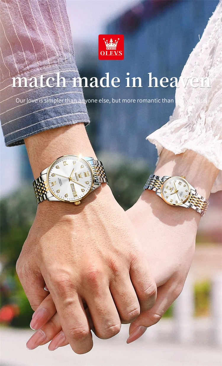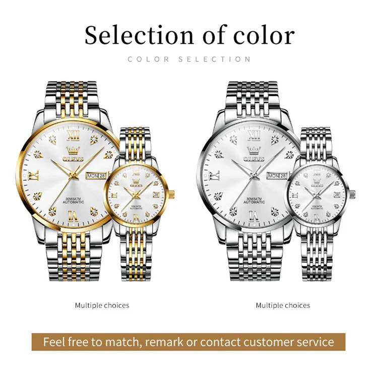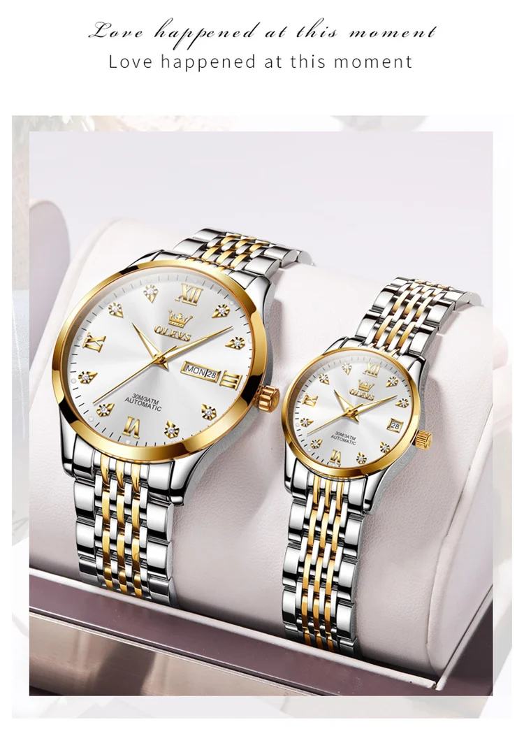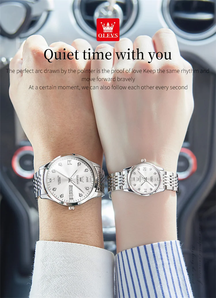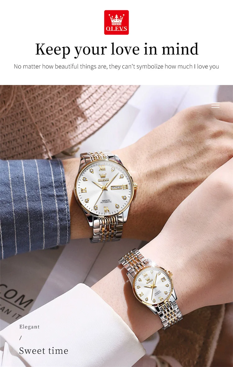 OLEVS 6673 Lovers Automatic Watch Pair Watches for Couples Bracelet Luminous Calendar Mechanical Wristwatch Women