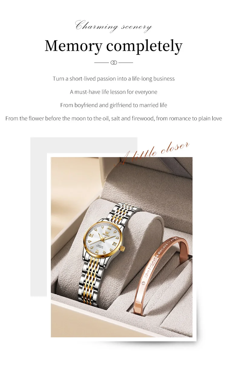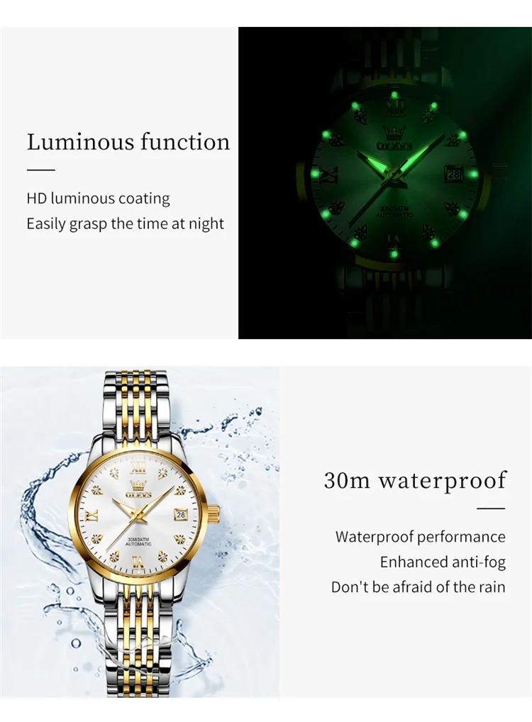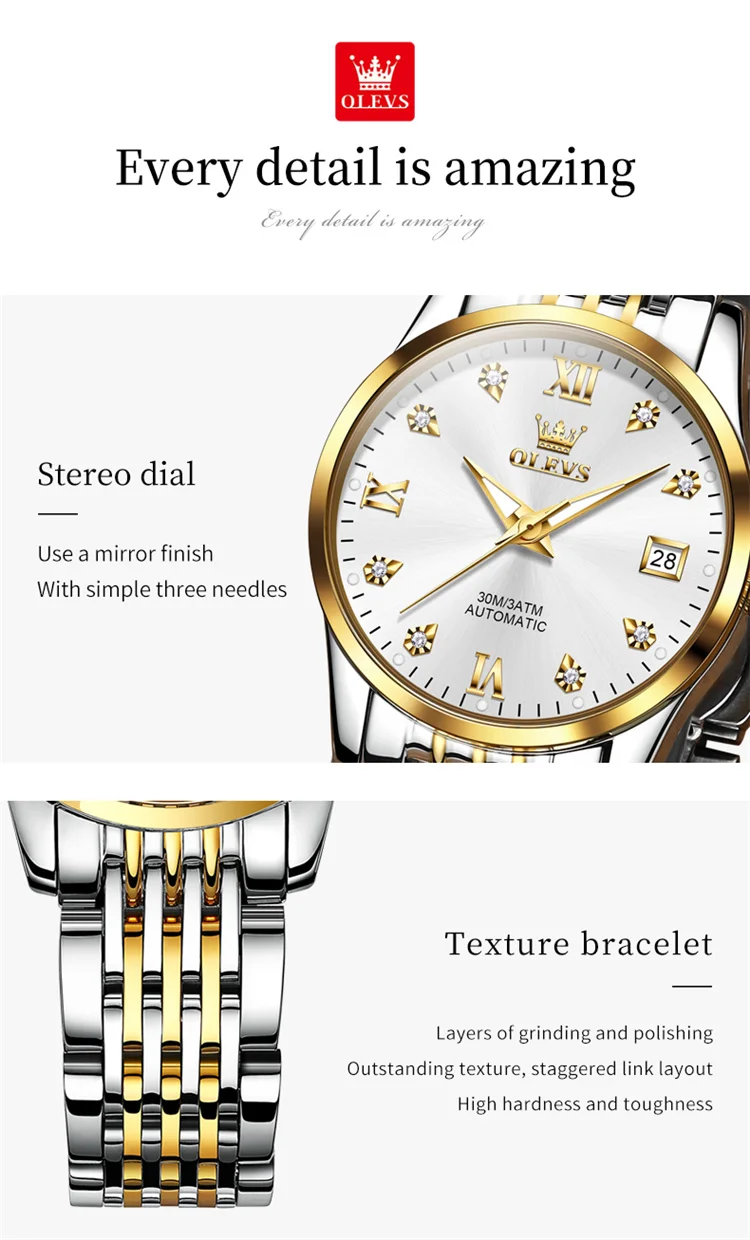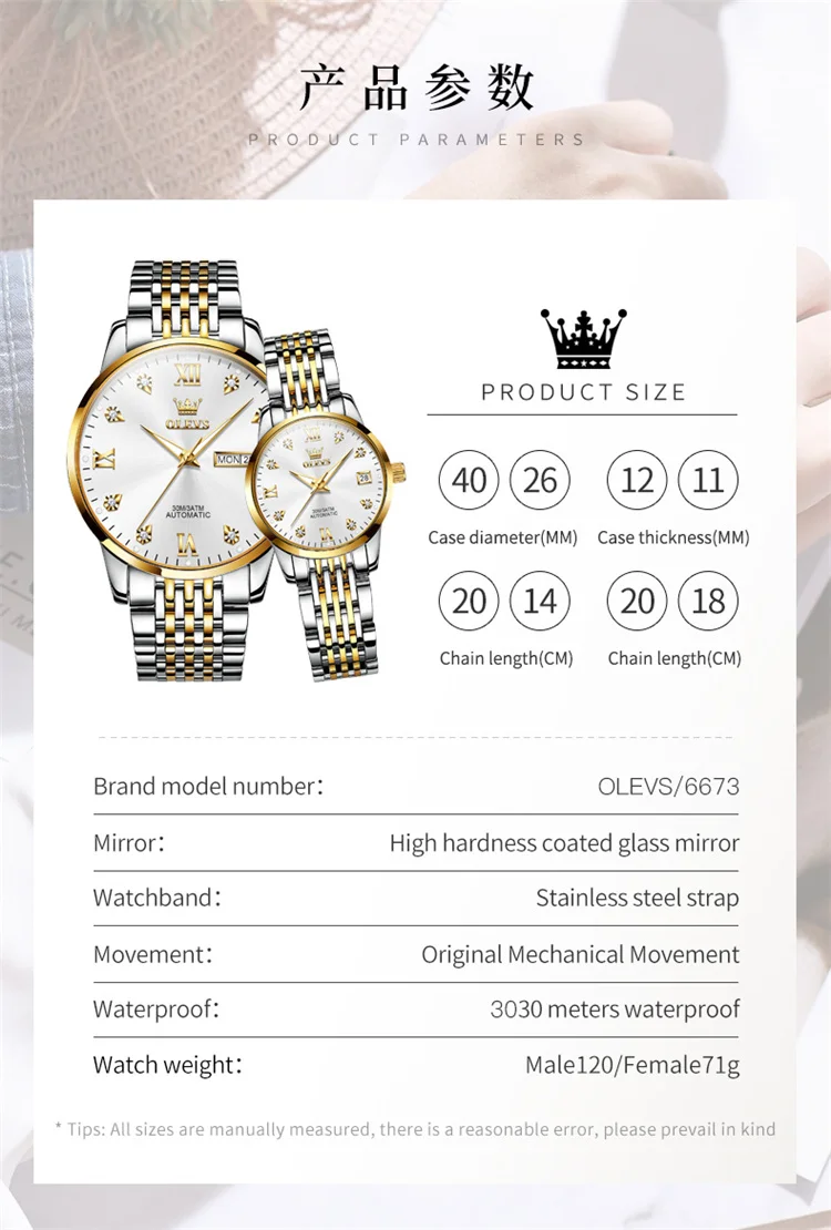 OLEVS 6673 Lovers Automatic Watch Pair Watches for Couples Bracelet Luminous Calendar Mechanical Wristwatch Women