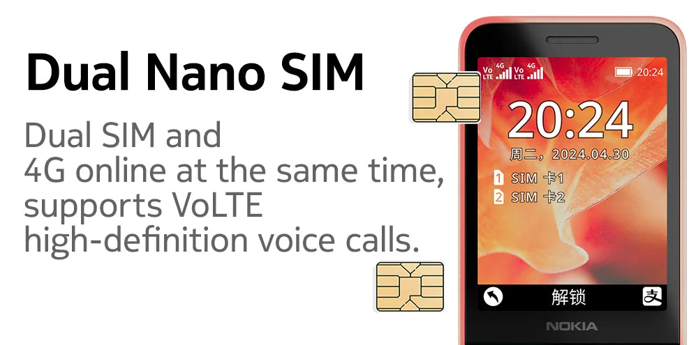 Dual nano SIM and 4G online at the same time, and VoLTE high-definition voice calls.