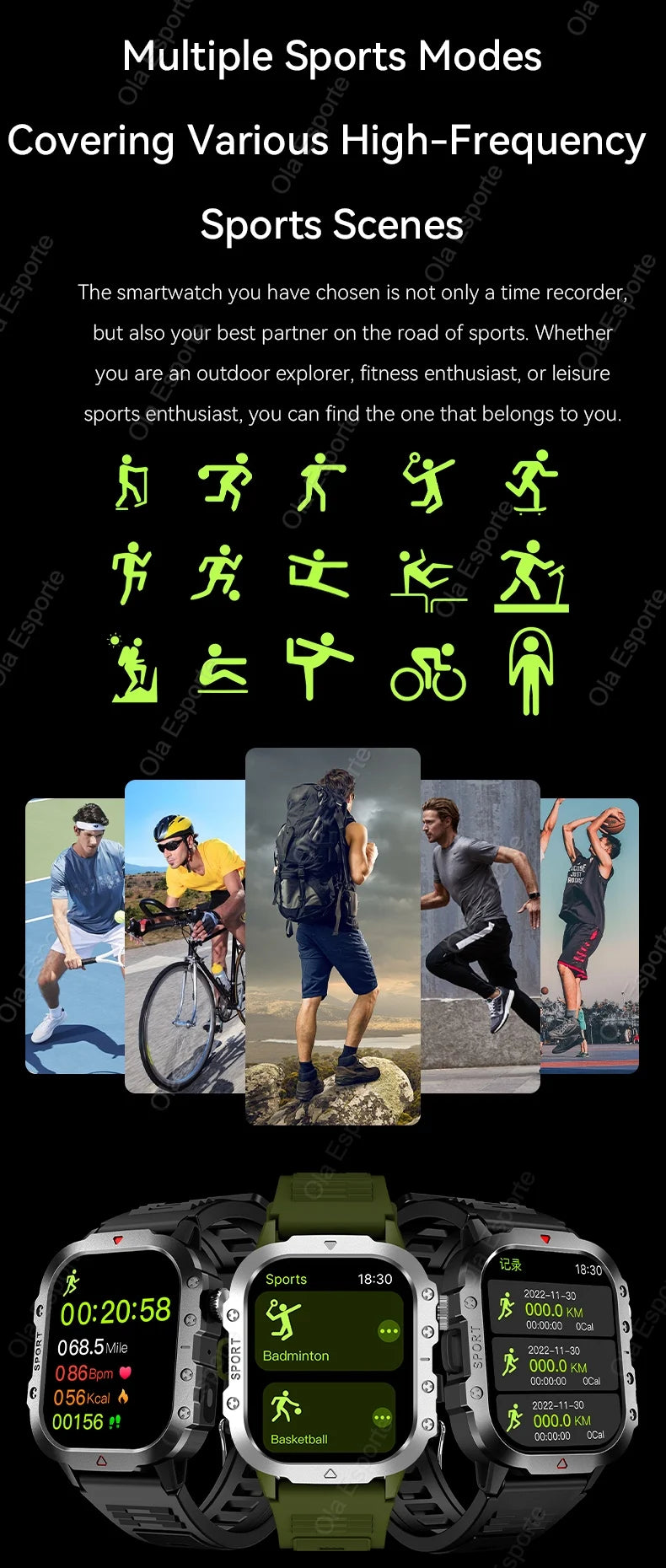 Outdoor Sports Smartwatch New 2025 2.01 inch HD Screen LED Flashlight Bluetooth Talking Smart Watch for Men Women Holiday Gift