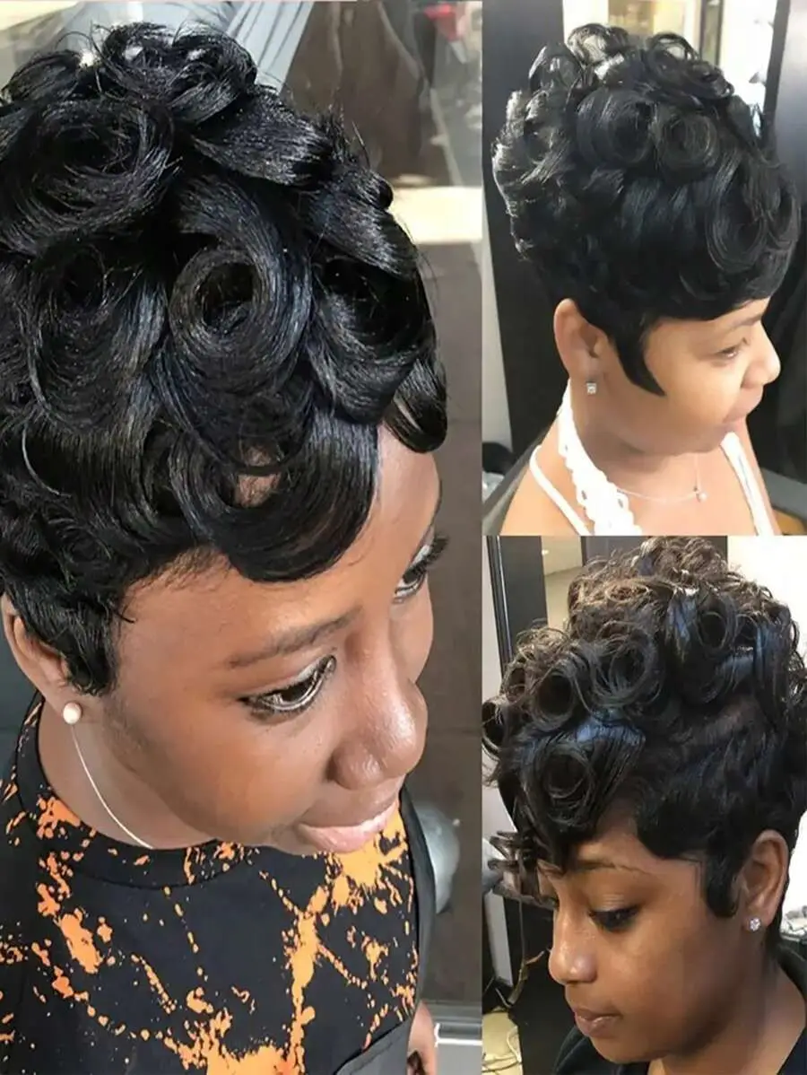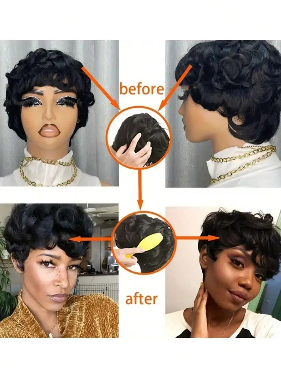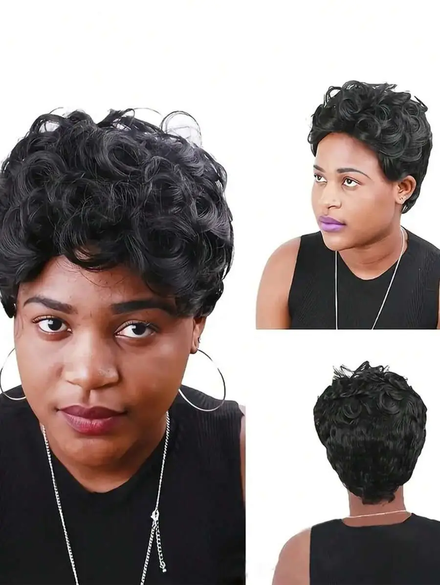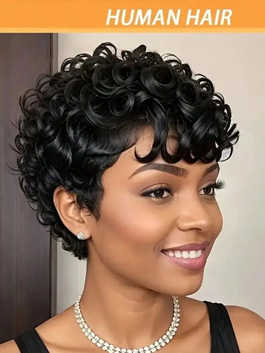 Pixie Cut Wigs 100% Human Hair Wigs Short Curly Pixie Cut Wigs Full Machine Made Wig Pixie Curly Black 1B Color For Black Women