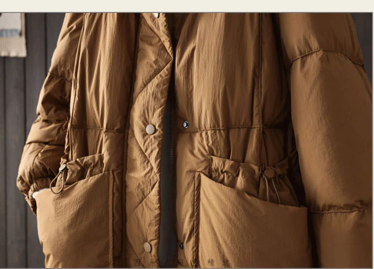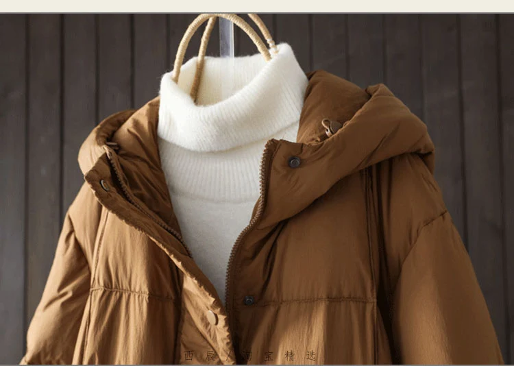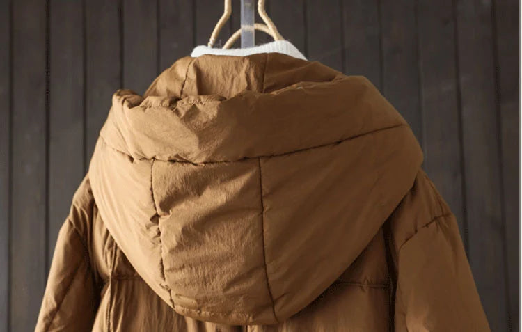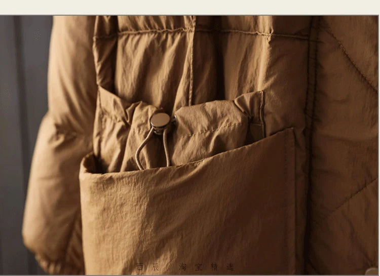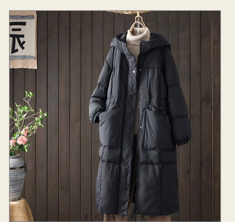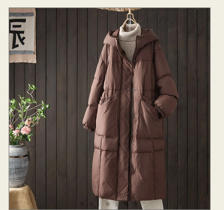 Schinteon Women White Duck Down Long Jacket Casual Loose Autumn Winter Outwear with Hood Warm Coat Big Pockets 2024 Korean Style