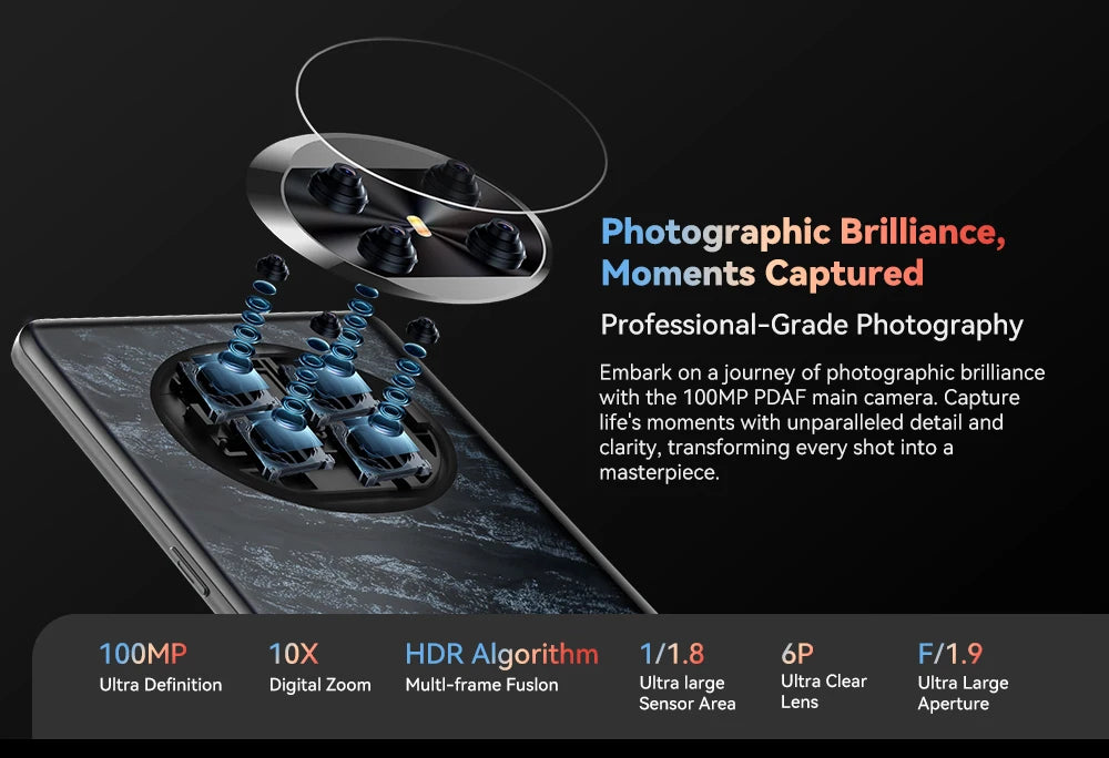 Rear camera: 100MP PDAF Main Lens 16MP Wideangle Lens 5MP Macro Lens 0.3MP Sensor with 1A LED flashlight |