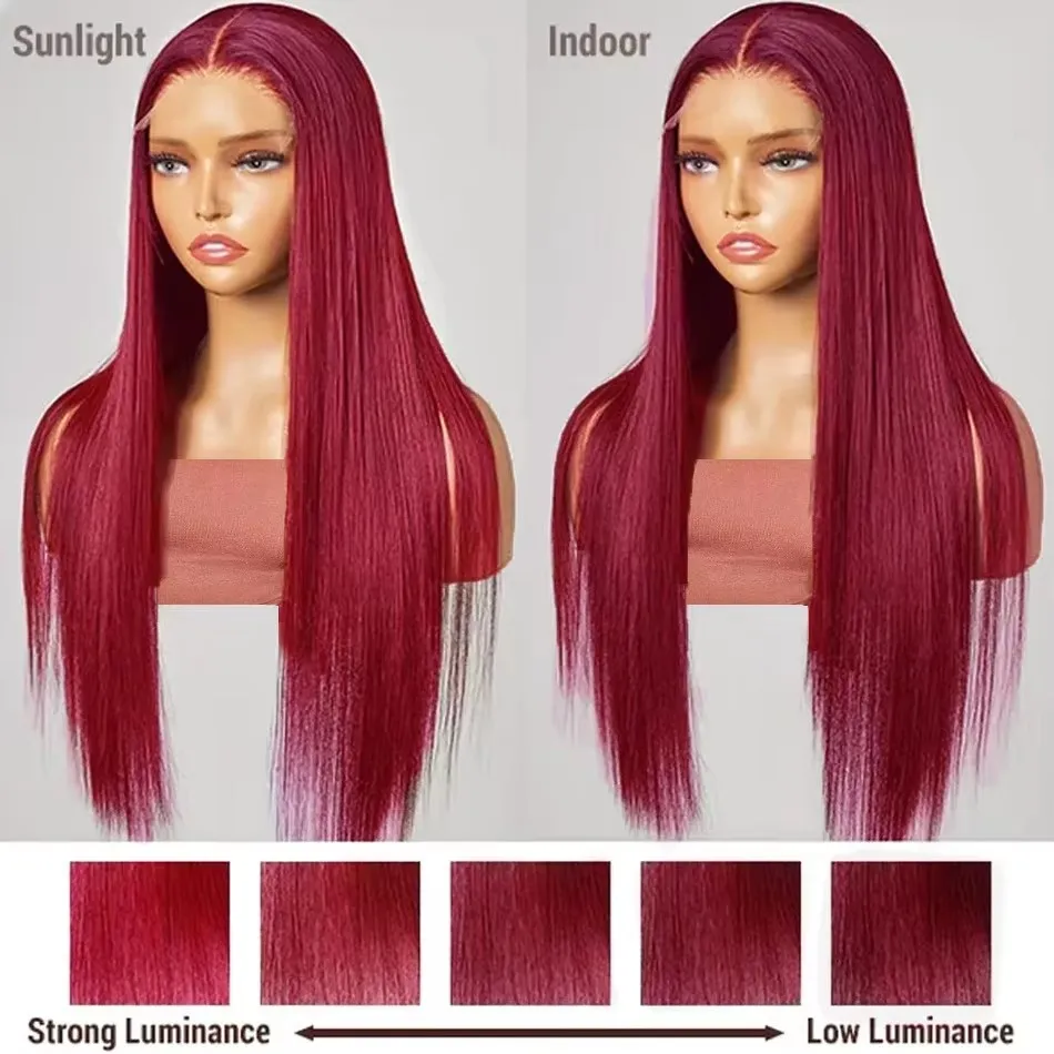 Sleek Red 99J Colored T1B/99J Wig 13*4*1 T Part Lace Front Part Brazilian Straight 22 Inches Human Hair Wigs Natural Remy Hair