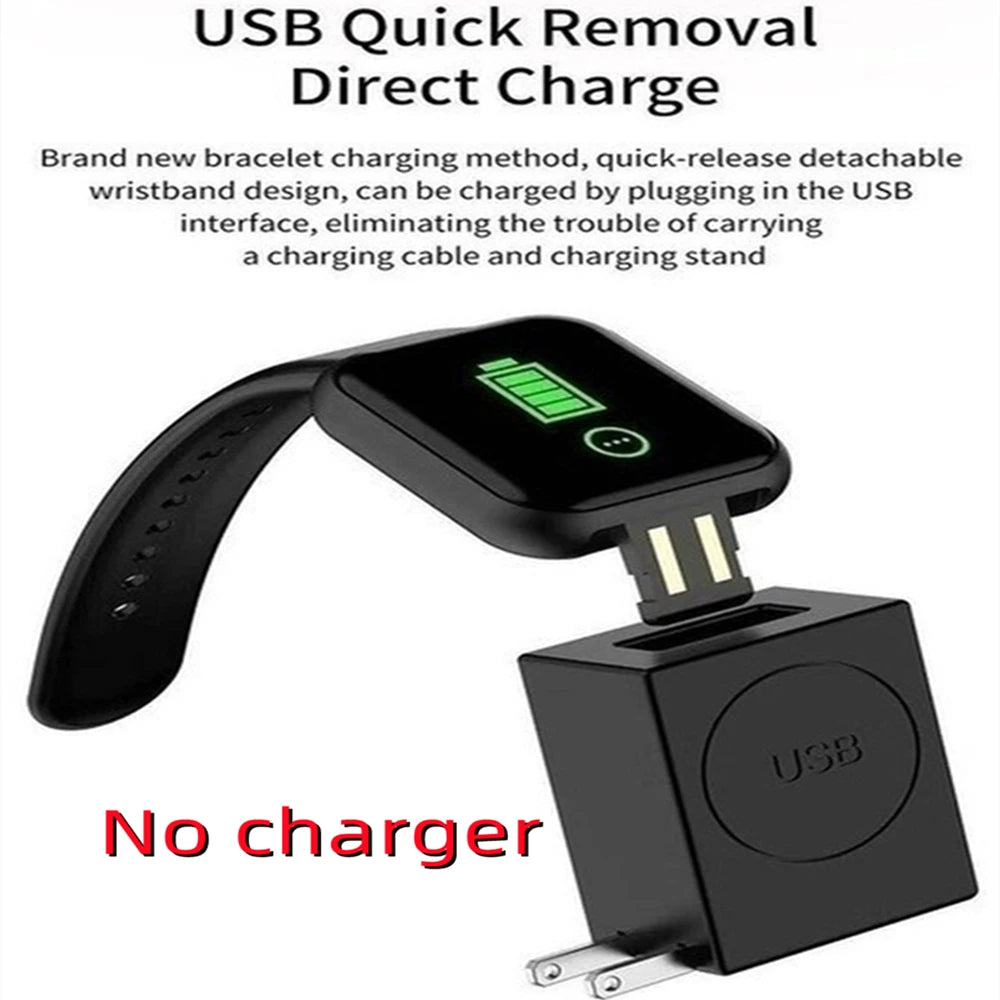 3.Brand new bracelet charging method:quick-release detachable wristband design, can be charged by plugging in the USB interface, eliminating the trouble of carrying a charging cable and charging stand.