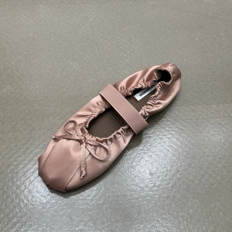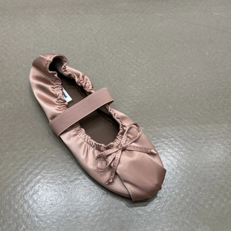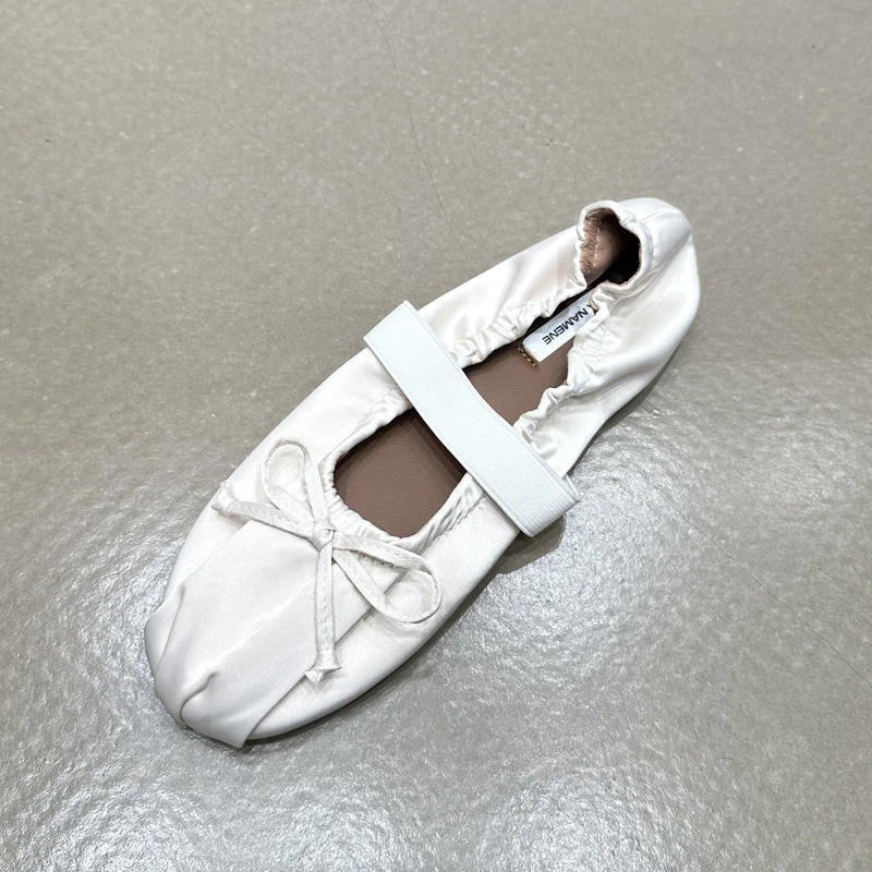 SUOJIALUN 2024 Autumn Women Flat Shoes Ladies Elegant Pleated Ladies Elegant Shallow Slip On Ballerinas Shoes Soft Flat Dress Bo