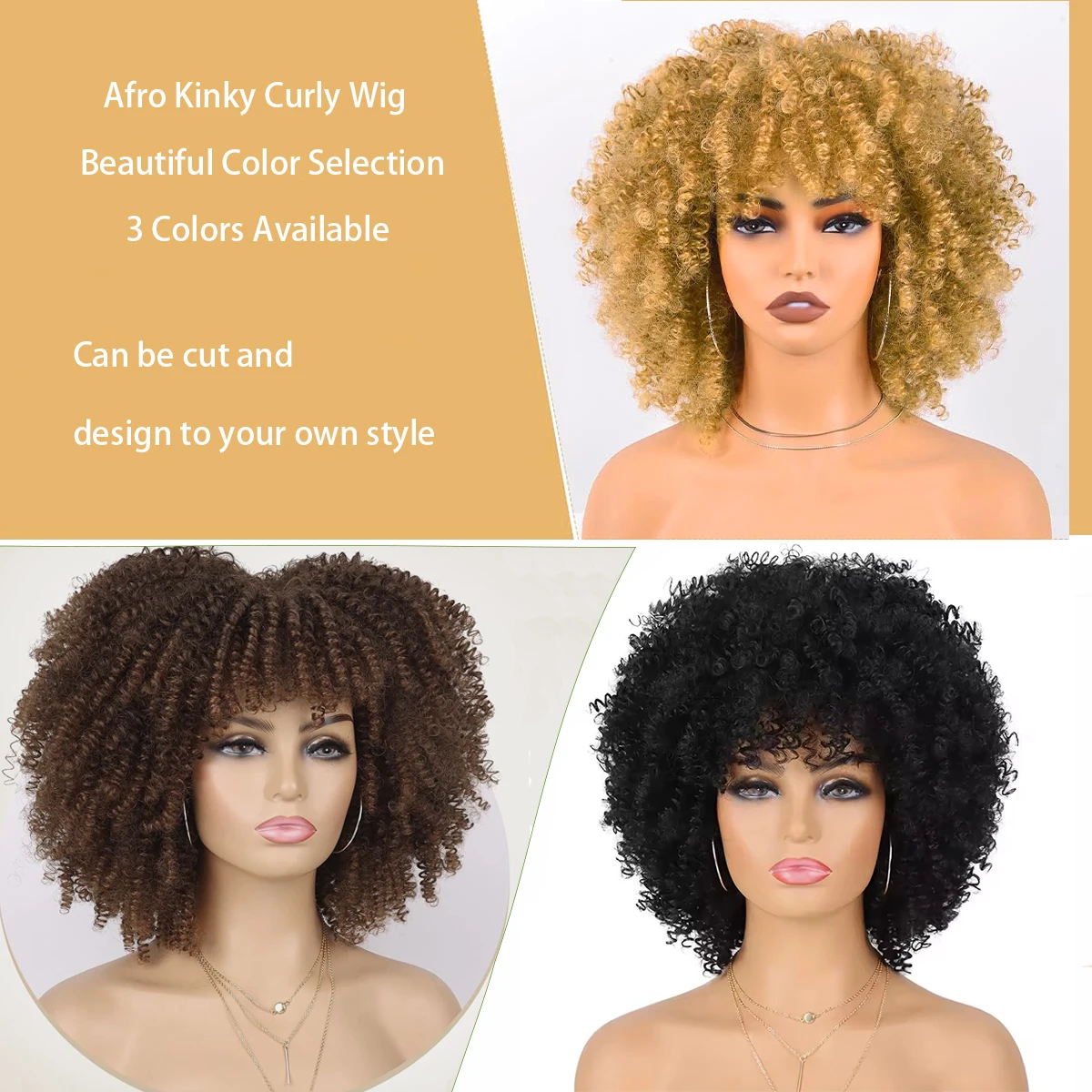 Synthetic Afro Kinky Curly Wigs for Women Kinky Curly Hair Wig, Short Full Wig Afro Bomb Curly Hair for Daily Party Use