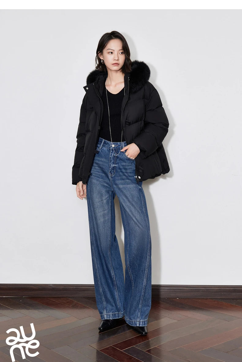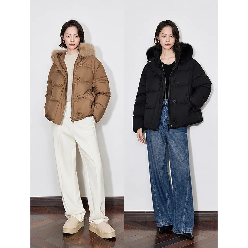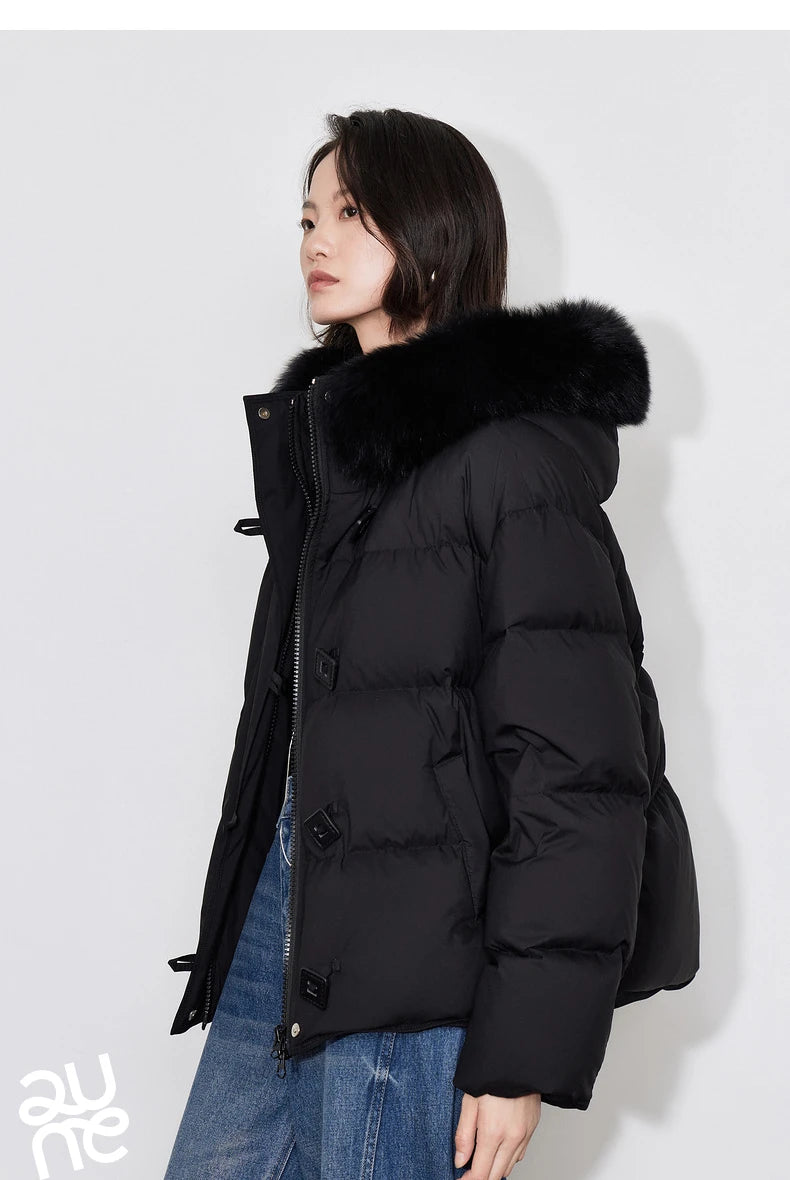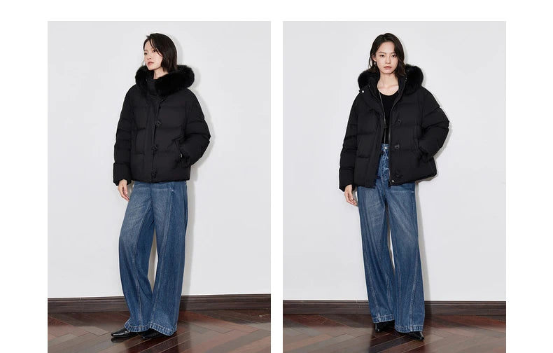 TOYOUTH Women Down Jacket 2024 Winter New 90% White Duck Down Fur Collar Hooded Warm Jacket Coat
