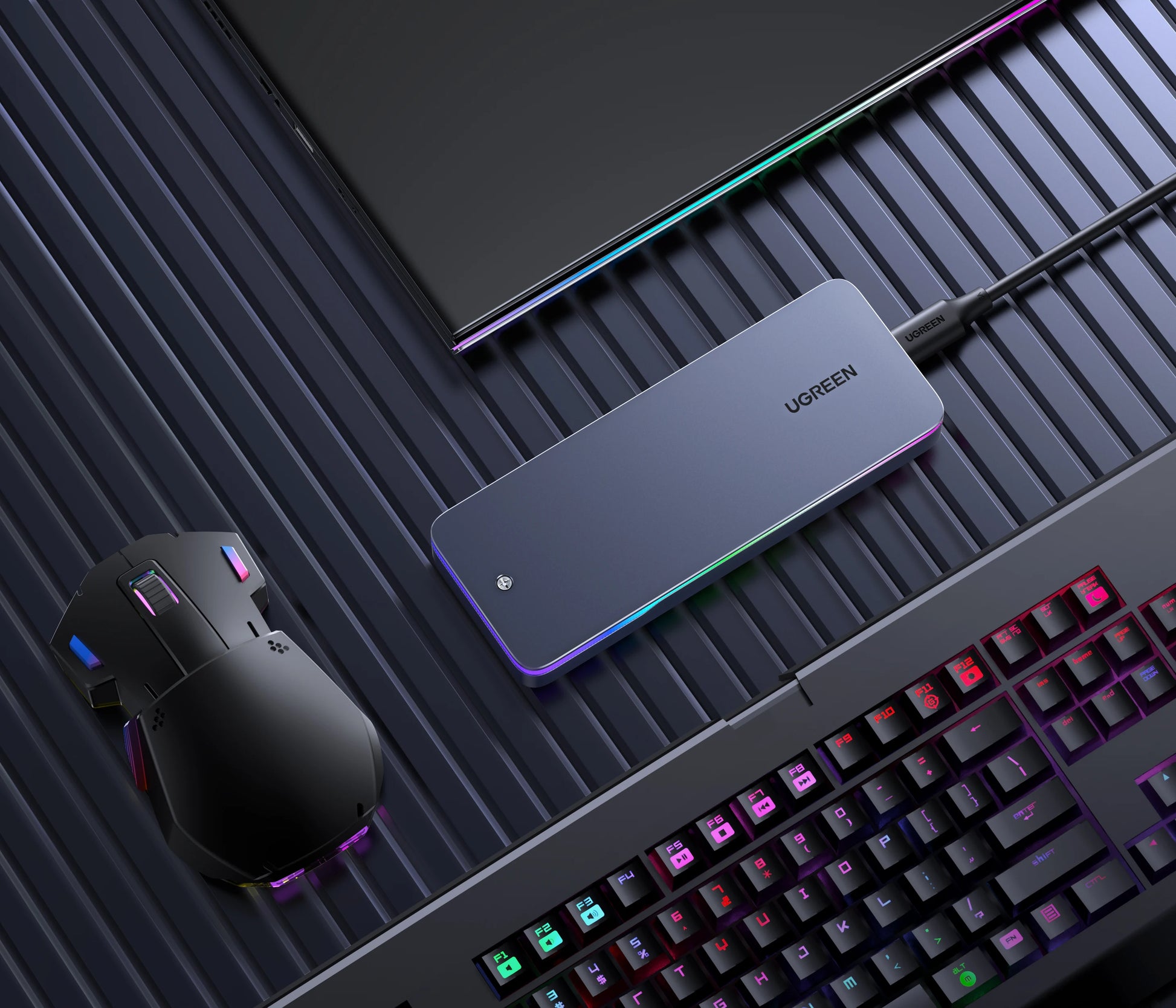 UGREEN 20Gbps M.2 SSD Case NVMe SATA SSD Enclosure Adapter USB 3.2 Gen2 External Enclosure Supports RGB Lighting effect