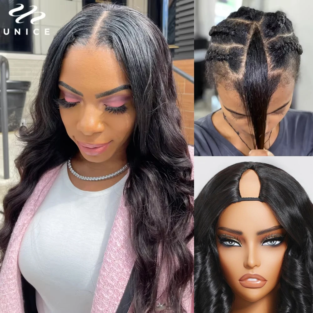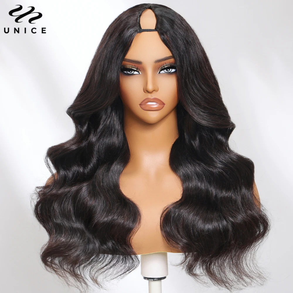 UNice Hair Drawstring Body Wave V Part Wig Natural Color 100% Human Hair Wigs Clip In V-Part Wig Mini Leave Out 150% Density