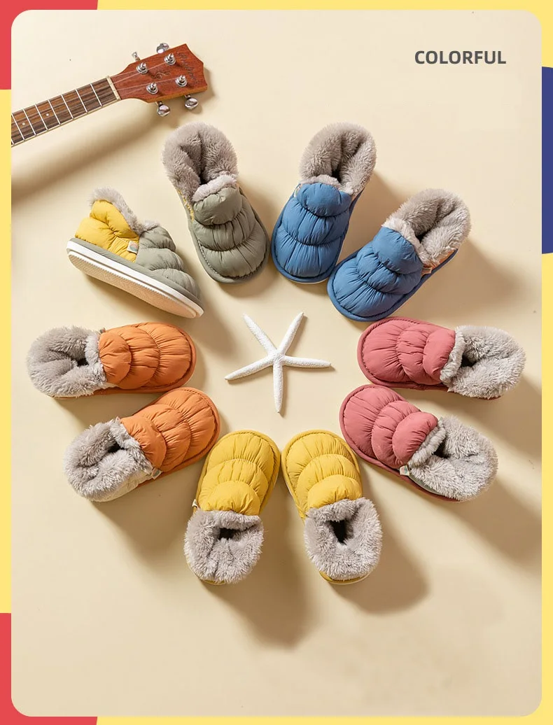 WDZKN Fashion Women Home Cotton Shoes Winter Warm Plush Slip On Slippers Waterproof Down Soft Bottom Indoor Couple Outside Shoes