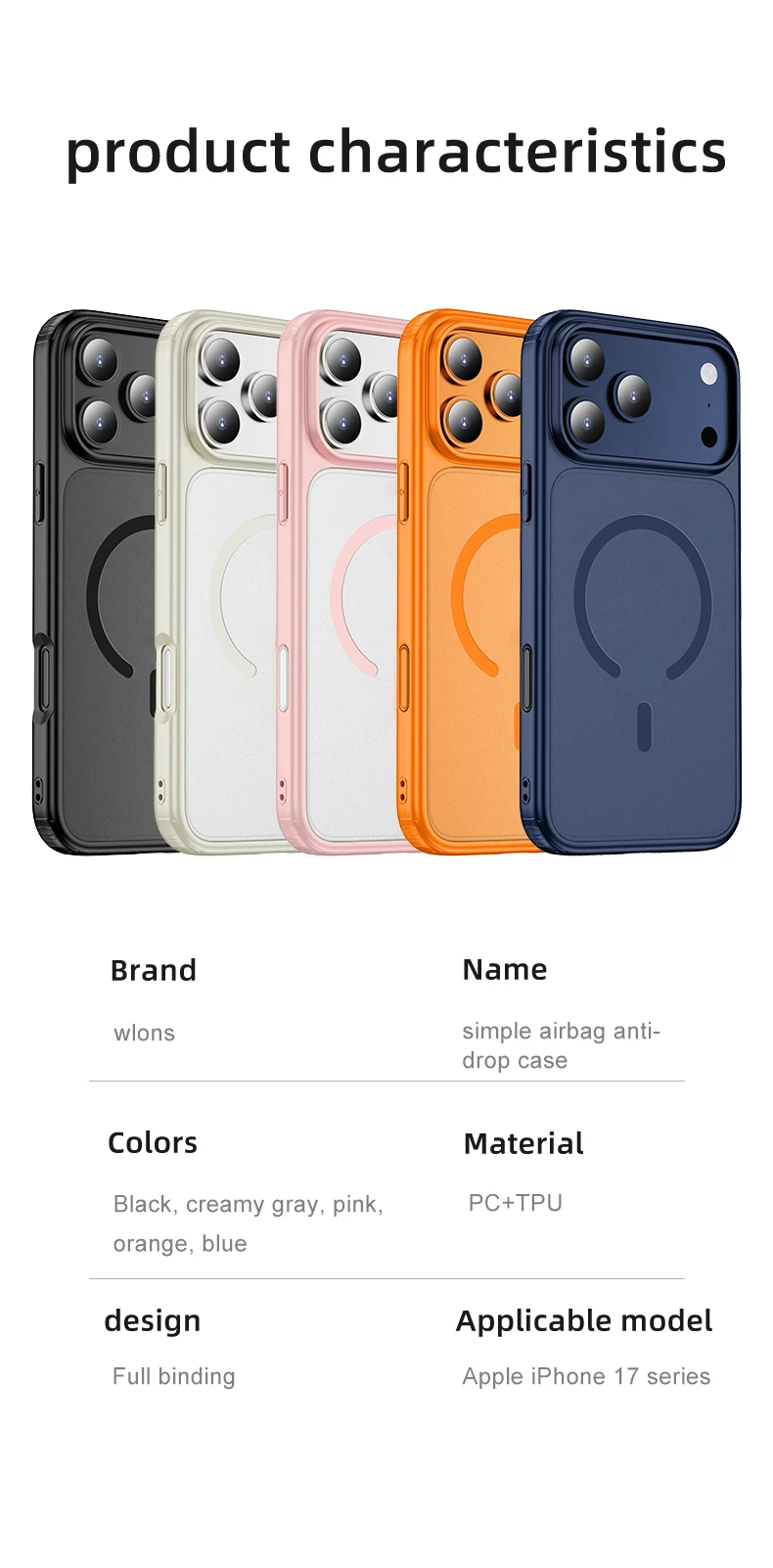 Wlons Magsafe Magnetic Wireless Charging Frosted Shockproof Case for iPhone 17 Pro Max 17 Air Skin Feel Rugged Armor Cover