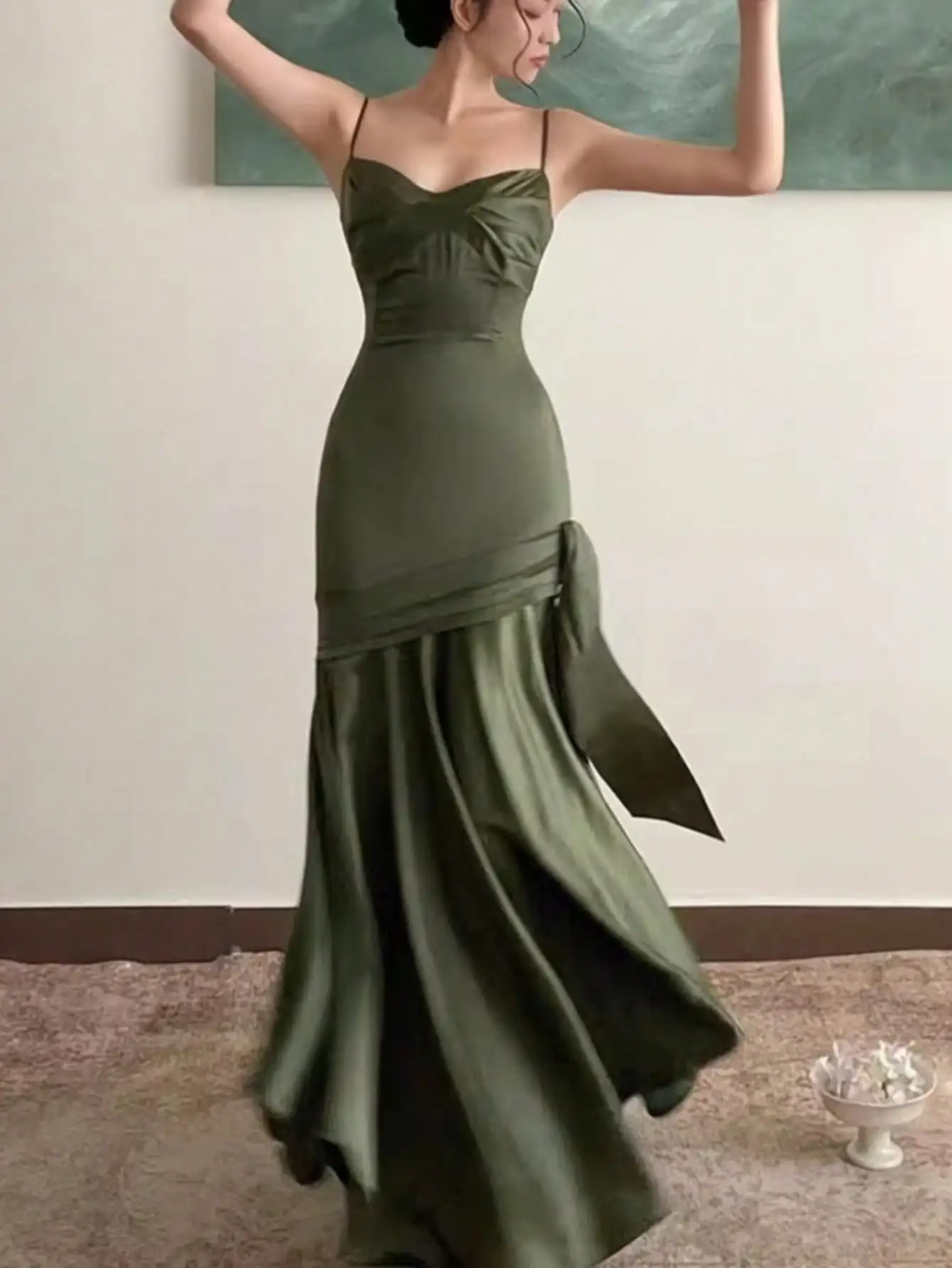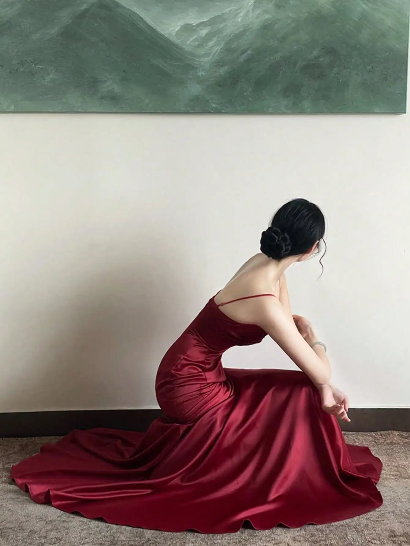 Women Elegant Red Maxi Evening Dresses Vintage Solid A Line Fashion Slim Party Birthday Prom Femmle Wedding Guest Vestido Summer