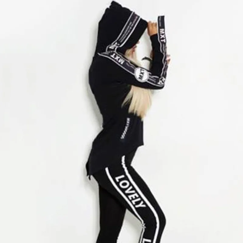 Women's clothes Black&White Hooded Jackets&Pants Suits for Women Contrast Color Loose Hooded Suits Alphabet trouser set