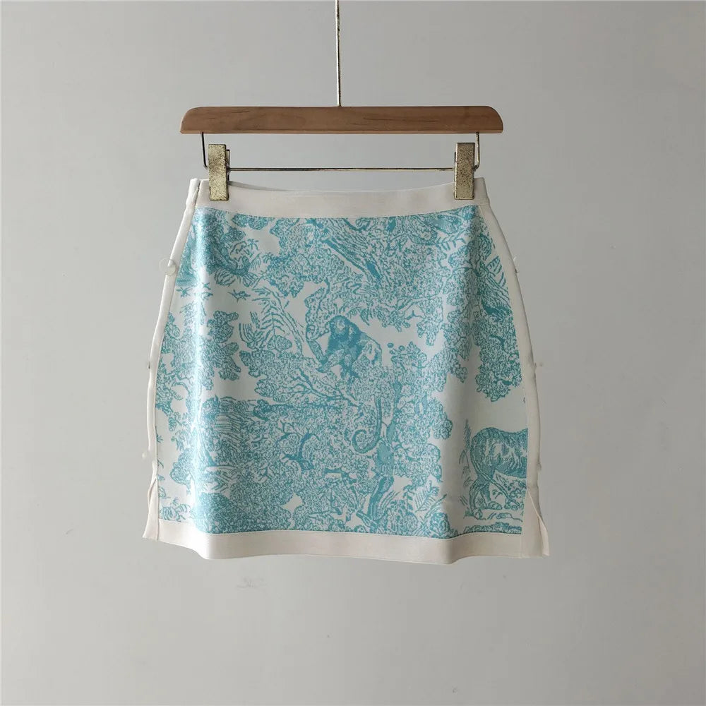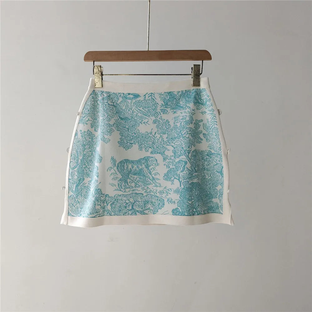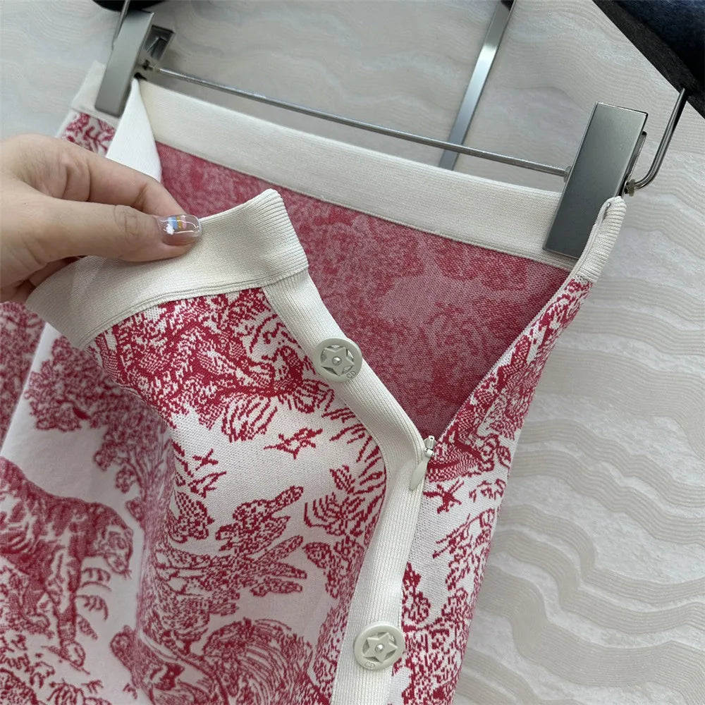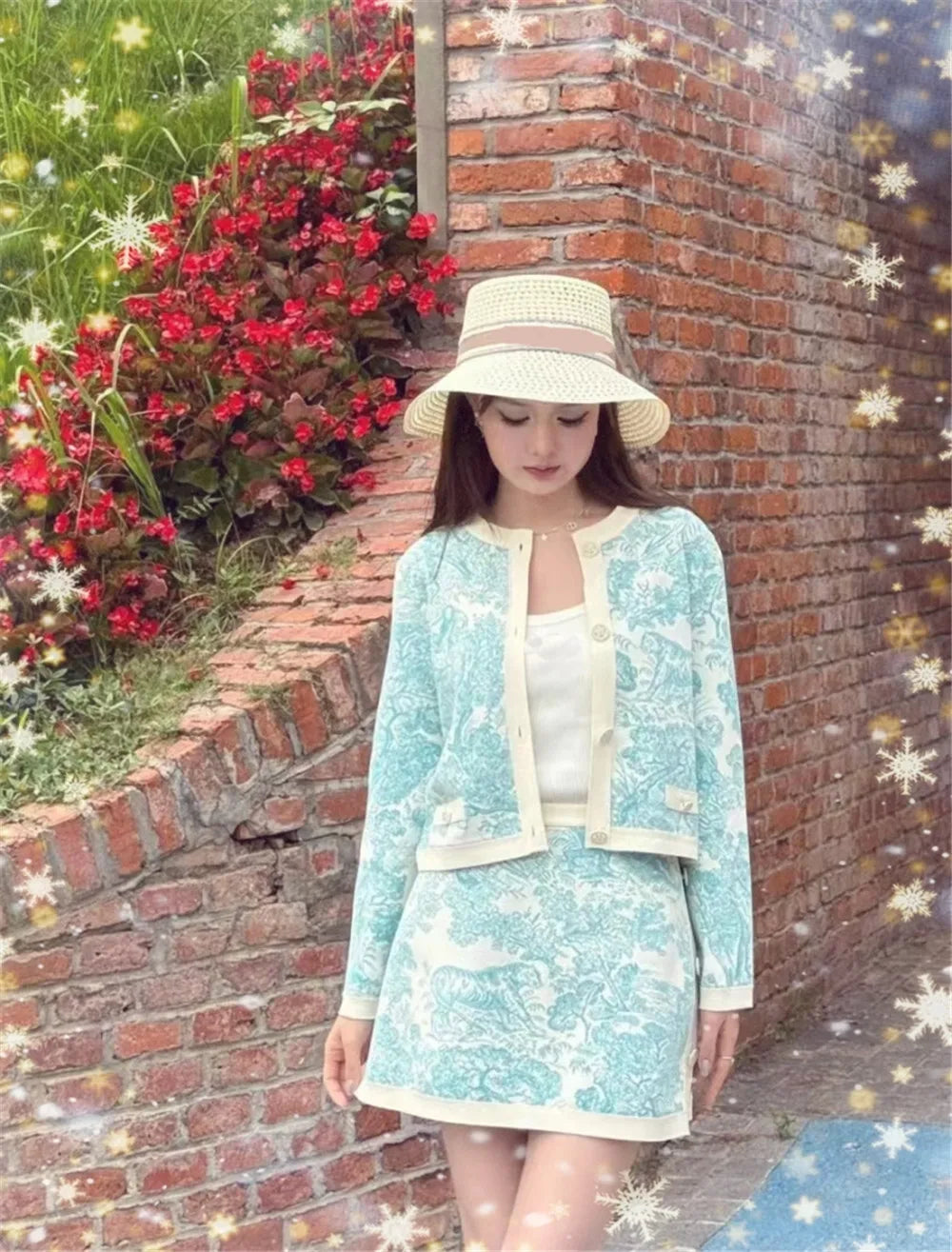 Women's Clothing 2025 Early Autumn New Style Temperament Jungle Jacquard Knitted Cardigan Top+French Elegant Half Skirt Two-Piec