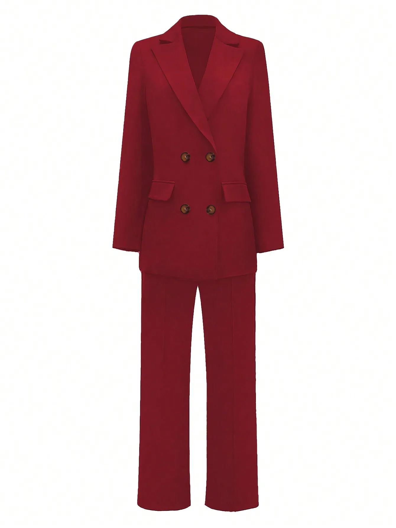 Women's Elegant Casual Blazer Jacket And Straight Trousers 2-Piece Suit Set Chrisimas & New Year Eve Party Outfit