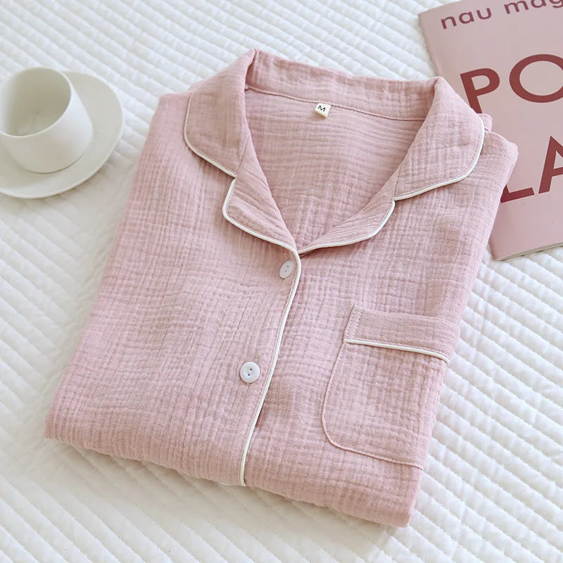 Women's Home Clothes Cotton Spring and Autumn Long Sleeved Long Pants Home Clothes Cardigan Simple Two-piece Pyjamas Set