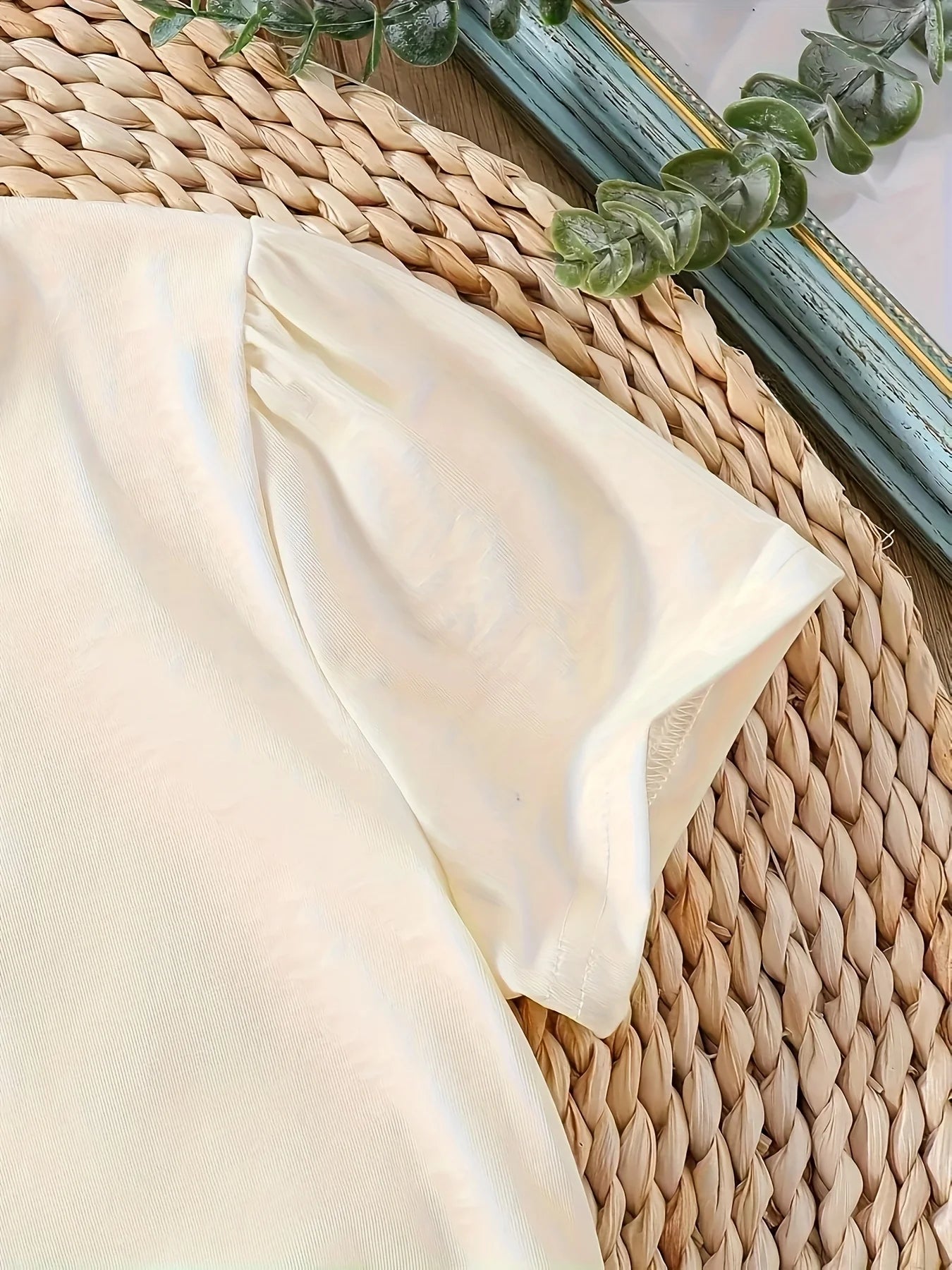 Women's Paris Print Crew Neck T-Shirt - Casual Loose Fit Short Sleeve Top with Eiffel Tower & French Lettering Design