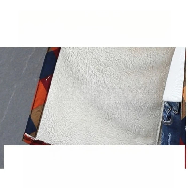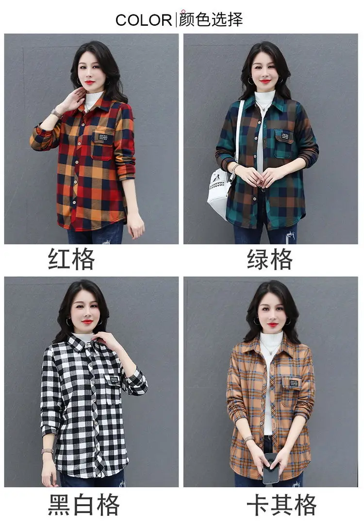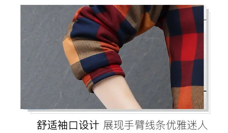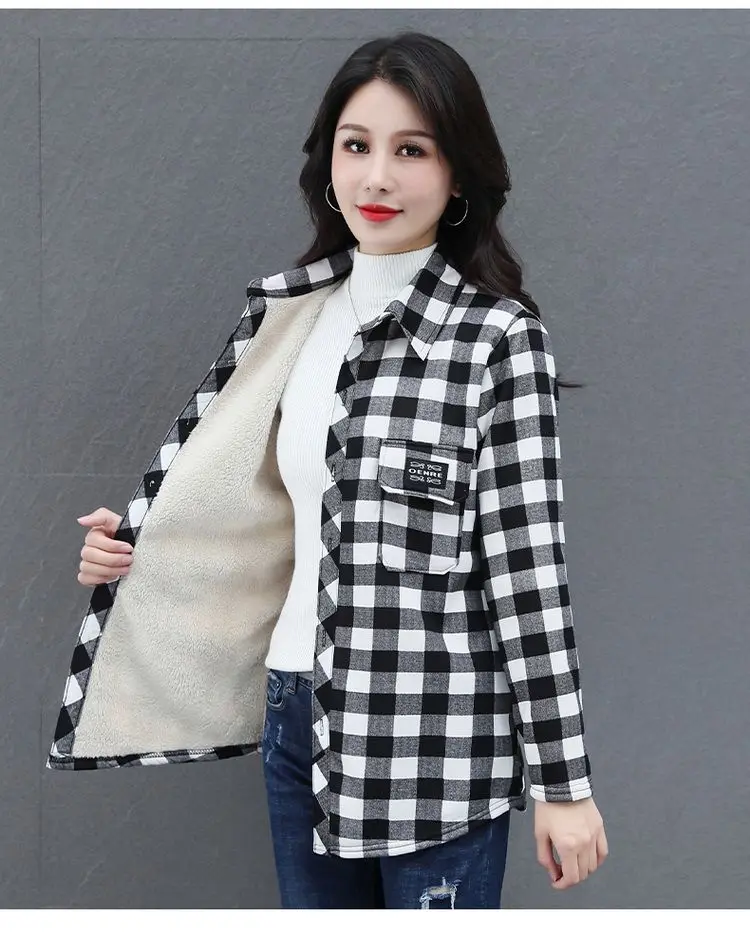 Women's Plaid Plus Velvet Shirt Vintage Thickened Oversized Keep Warm Woolen Blouses Loose-Fit Tops Outwear Female Clothes Shirt