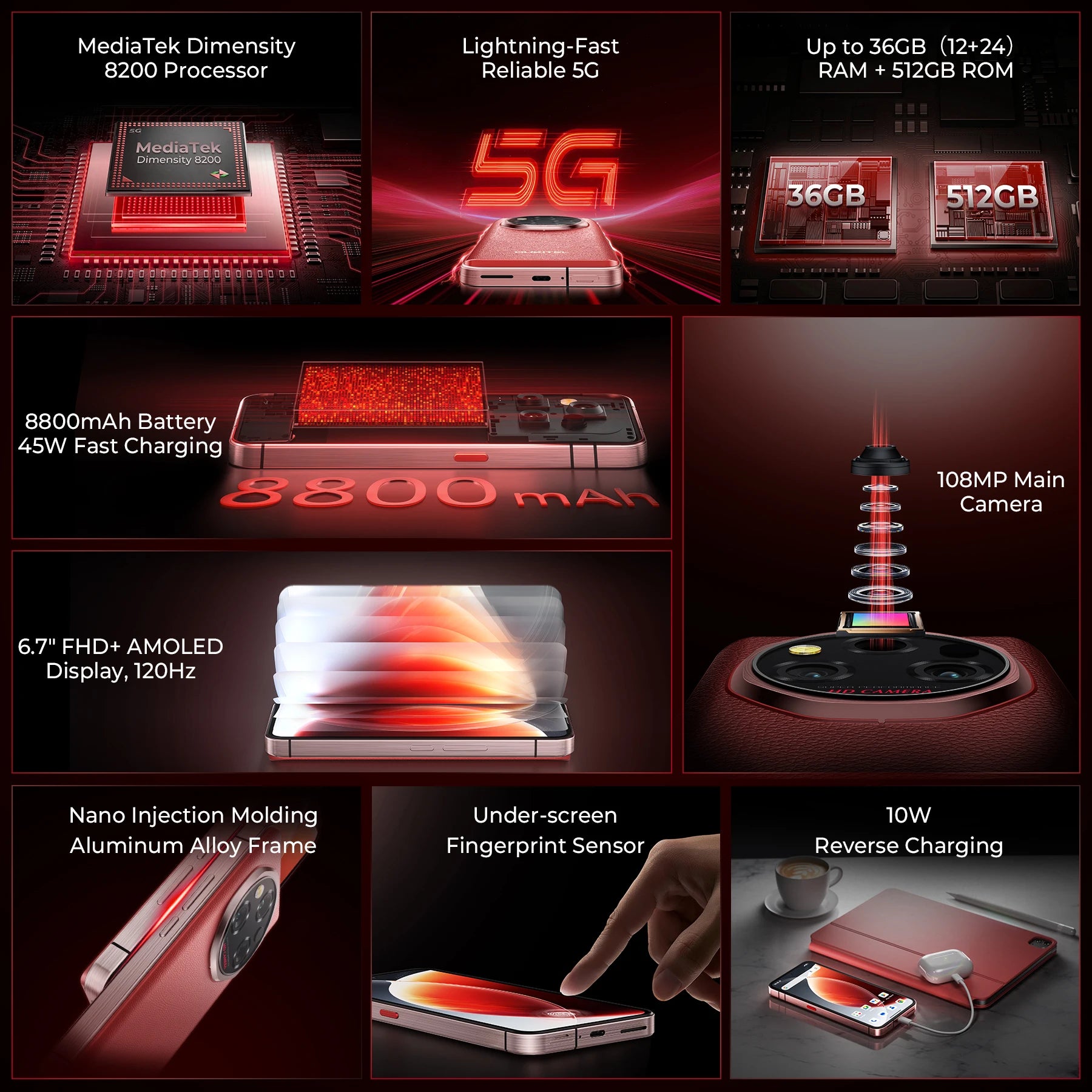 【World Premiere】OUKITEL WP210 Rugged Phone - MTK 8200, 36GB 512GB, 8800mAh 45W, 6.7", 108MP NFC Android15 Smartphone WIFI/5G