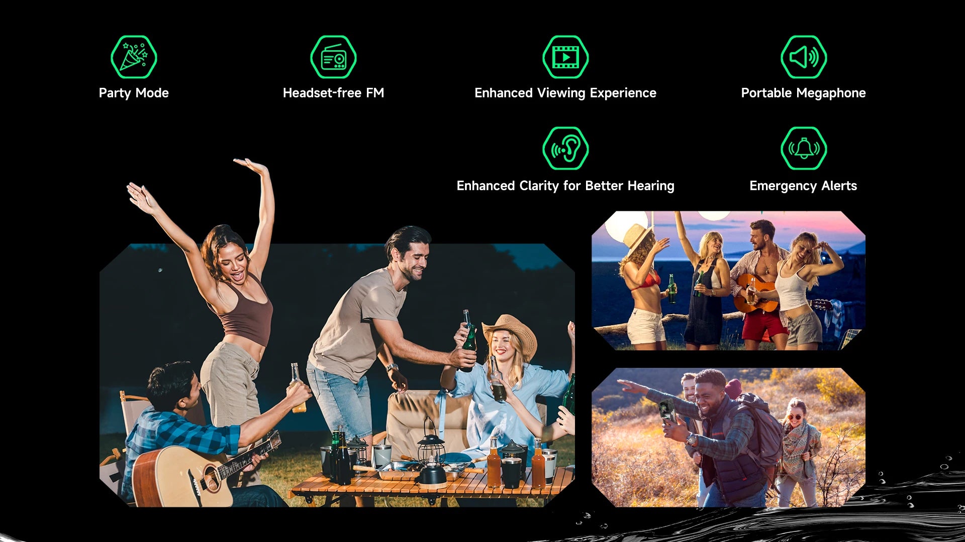 Elevate your outdoor gatherings with the ultra-loud halo speaker. Perfect for camping trips, beach parties, or any outdoor adventure with friends, its halo design brings the party to life with a stunning light show synchronized to the beats and patterns. Its 12800mAh battery can last for over 52 hours of nonstop fun.
