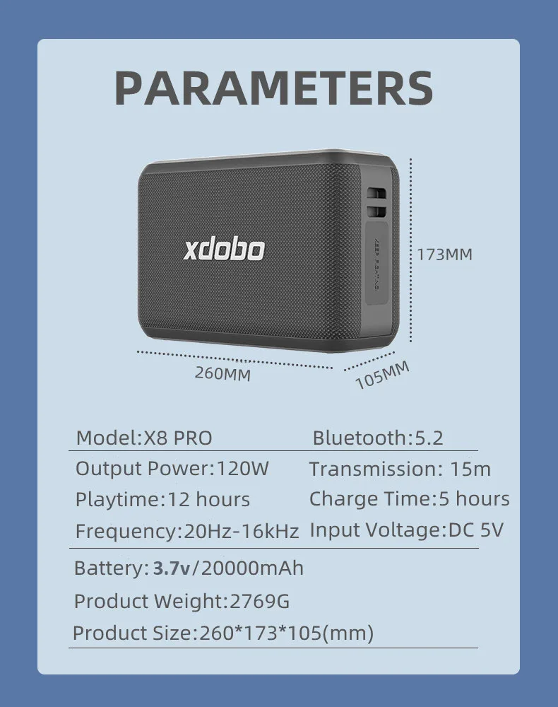 XDOBO X8 PRO 120W Super Power Speaker With 2 Microphone Subwoofer Waterproof Support TWS Wireless Karaoke Stereo Outdoor Speaker