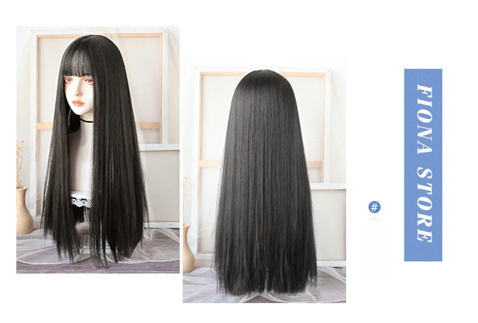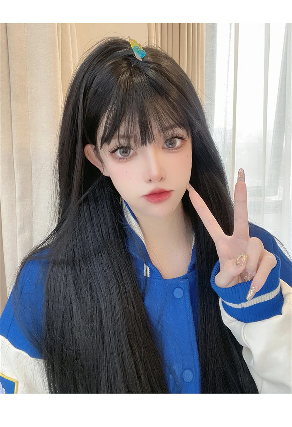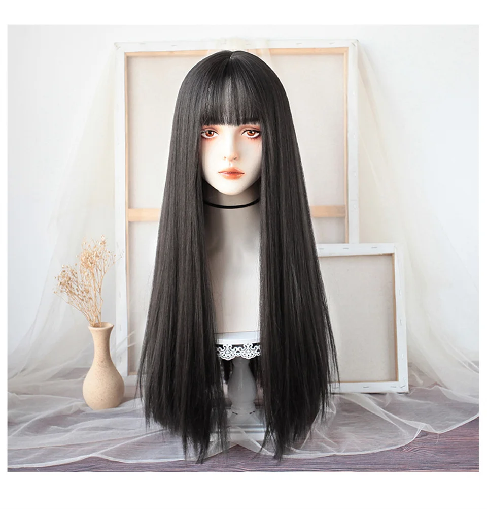 XIYUE Long Straight Black Wig With Bang Synthetic Wigs for Women Heat Resistant Natural Hair for Daily Halloween Cosplay Party