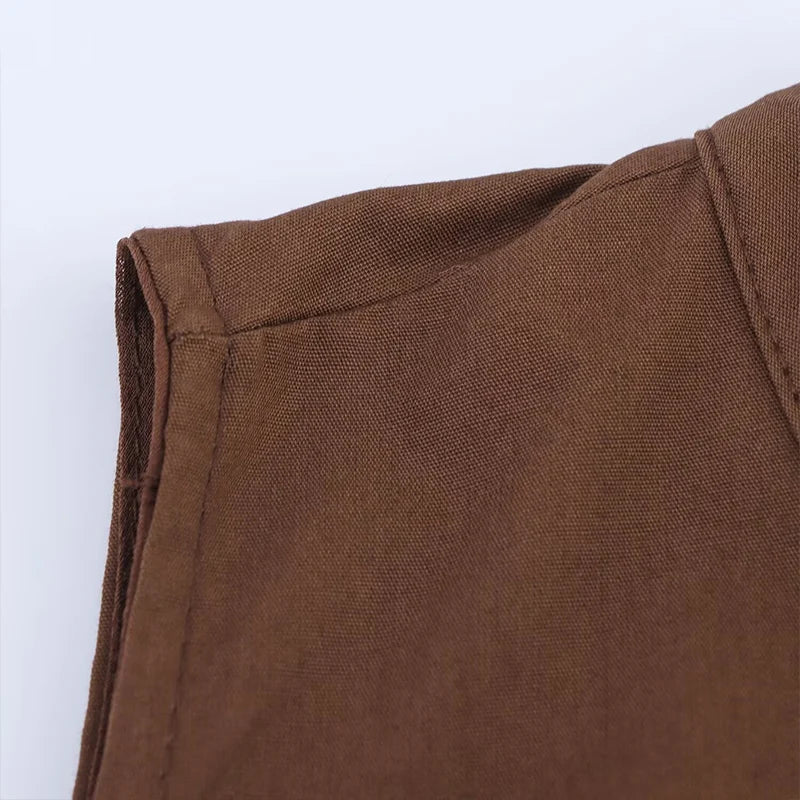 ZATRHMBM Summer Women's Wear 2025 New Fashion Midi Dress with Belt Retro Button Decoration Sleeveless Solid Color Dress
